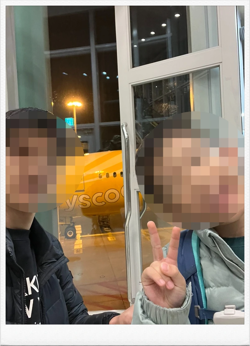 조금의 시간이 더 지났다. 마침내 탑승 게이트를 통과하여, 노란 색 스쿠트 항공 비행기를 만날 수 있었다. 비행기를 배경으로 아이와 함께 셀카를 찍어 보는데, 아이가 피곤해 보인단 말을 할 때가 아니다. 내 얼굴도 만만치 않게 피곤으로 덮여 있다. 우리 이 여행 잘 다녀올 수 있겠지?