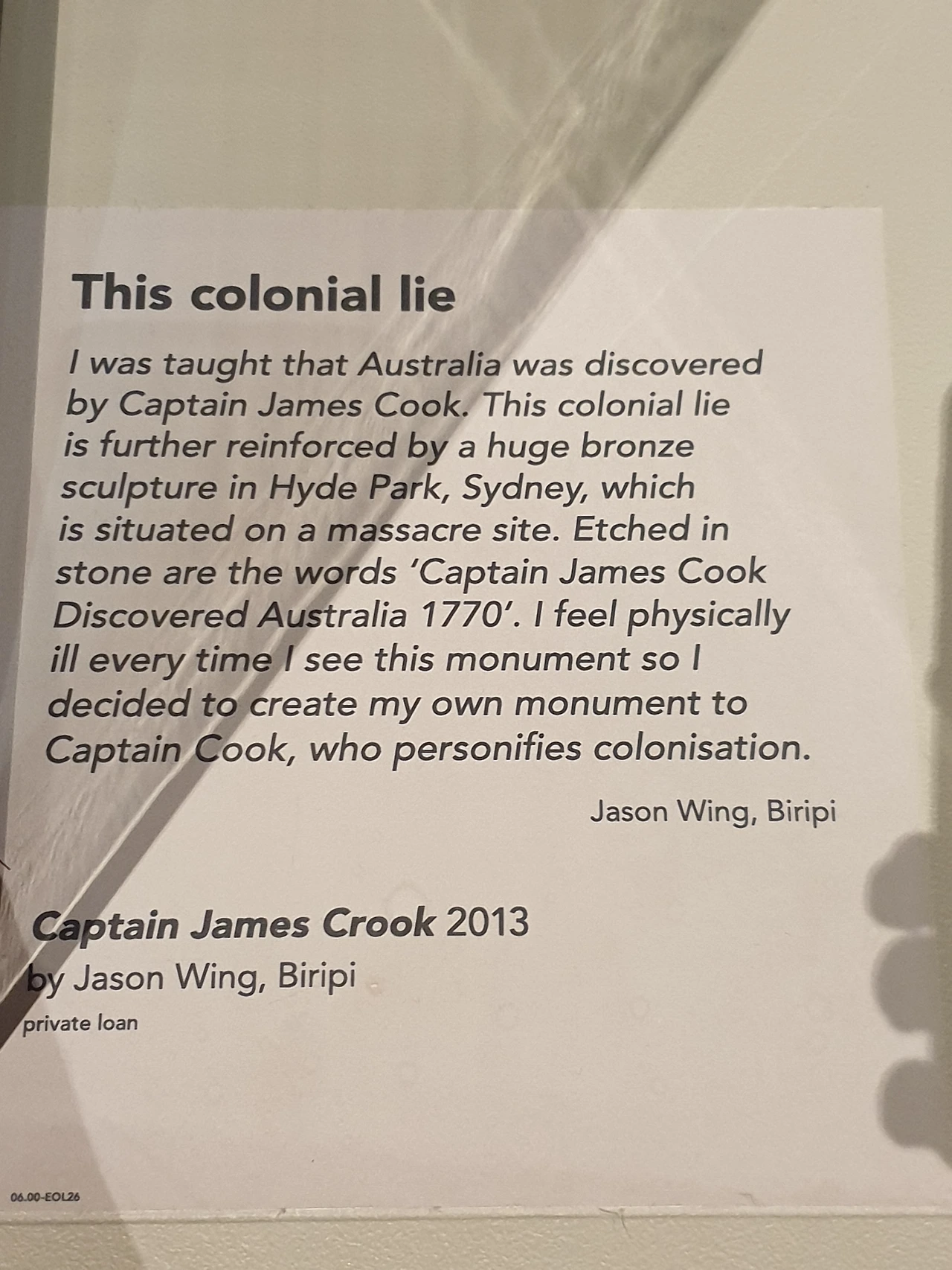 While Invasion Day’s complicated history continues to grow, the natives being a rare sight, their art is ubiquitous, speaking for the physical absence of their minds. We Call Them Pirates Out Here, a painting by Daniel Boyd, depicts Captain James Cook, the first European to reach Australia. However, Captain James Cook is wearing an eyepatch, the crew members following him yielding a Union Jack vandalised with a skull. Even after he met the Aboriginals, he declared the land ‘Terra Nullius’, robbing the Aboriginals of their rights. While Cook remains a huge figure to Australia Day, he is all but a saviour to the Aboriginals.
