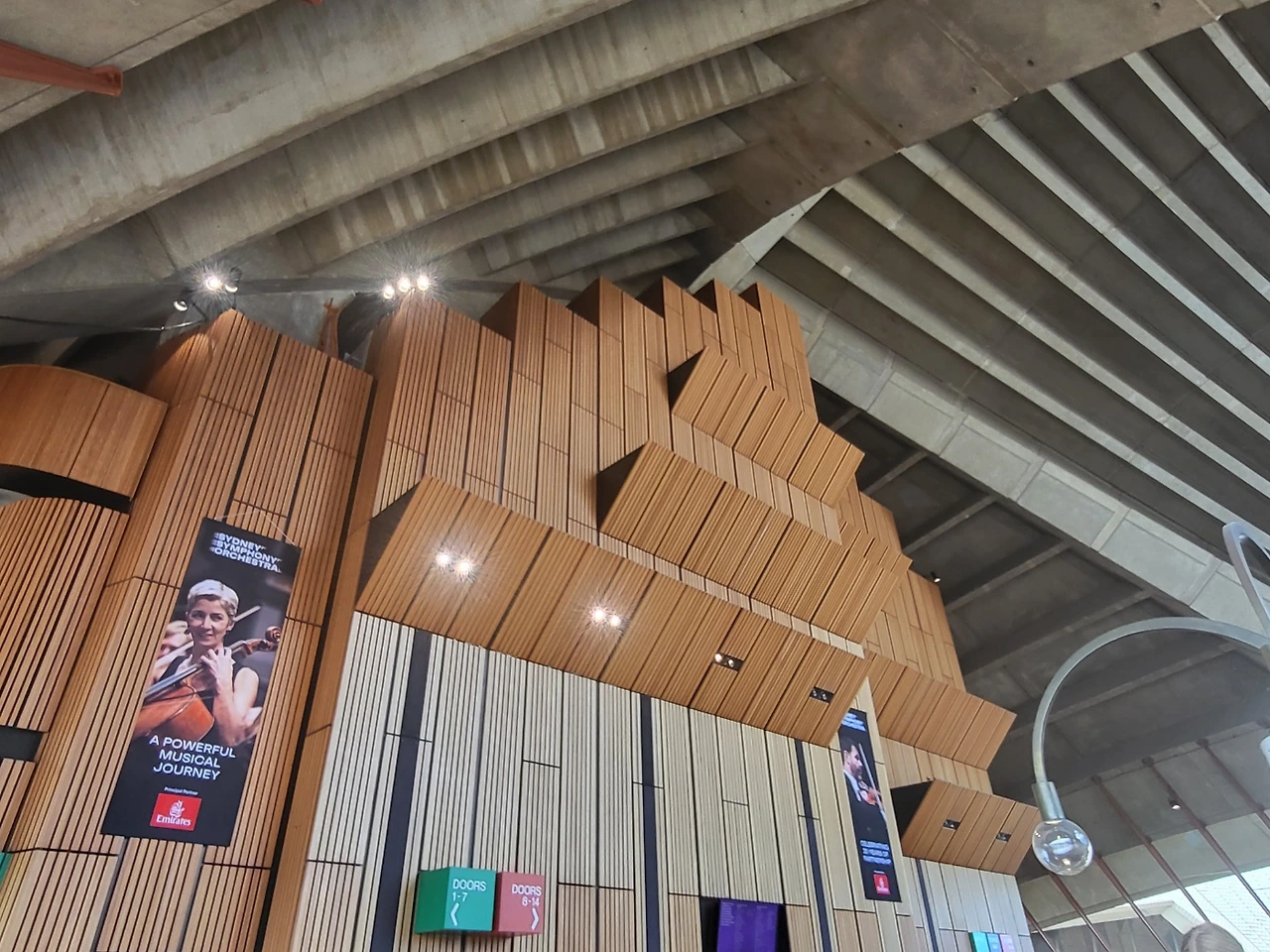 A soothing scent of lavender was the Sydney Opera House's wind chime. It was as if the space welcomed my arrival, and I paused to take in my surroundings. The rich warmth of light timber wrapped around me like a comforting presence, and my eyes were drawn to the grandeur of the Concert Hall. Above the orchestra, the world-renowned mechanical pipe organ stood proudly, its 10,244 pipes leaving me in awe. I found my seat - velvet red, just firm enough to keep me alert but soft enough to relax into. The violet carpet beside me exuded a calming effect, pulling me further into the experience. The hall itself felt like a colour trip to the 1800s. Half the audience was absorbed in thick program books, while others showcased their wardrobe's finest. I noticed how some women’s lips shimmered with gold, remnants from their drinks at the Theatre Bar. Then, as the lights dimmed, a hush fell over the crowd. The outside world faded, and my spirit left the Concert Hall. It was now journeying through the rich history of the Sydney Opera House.