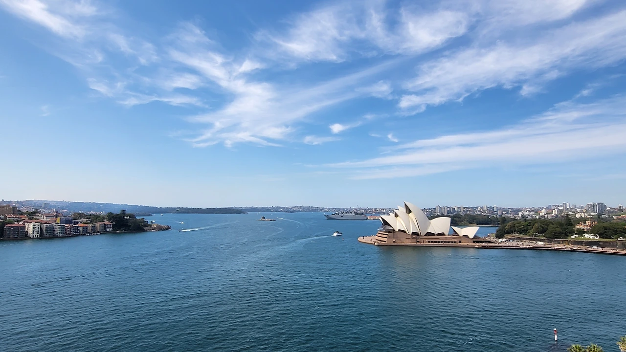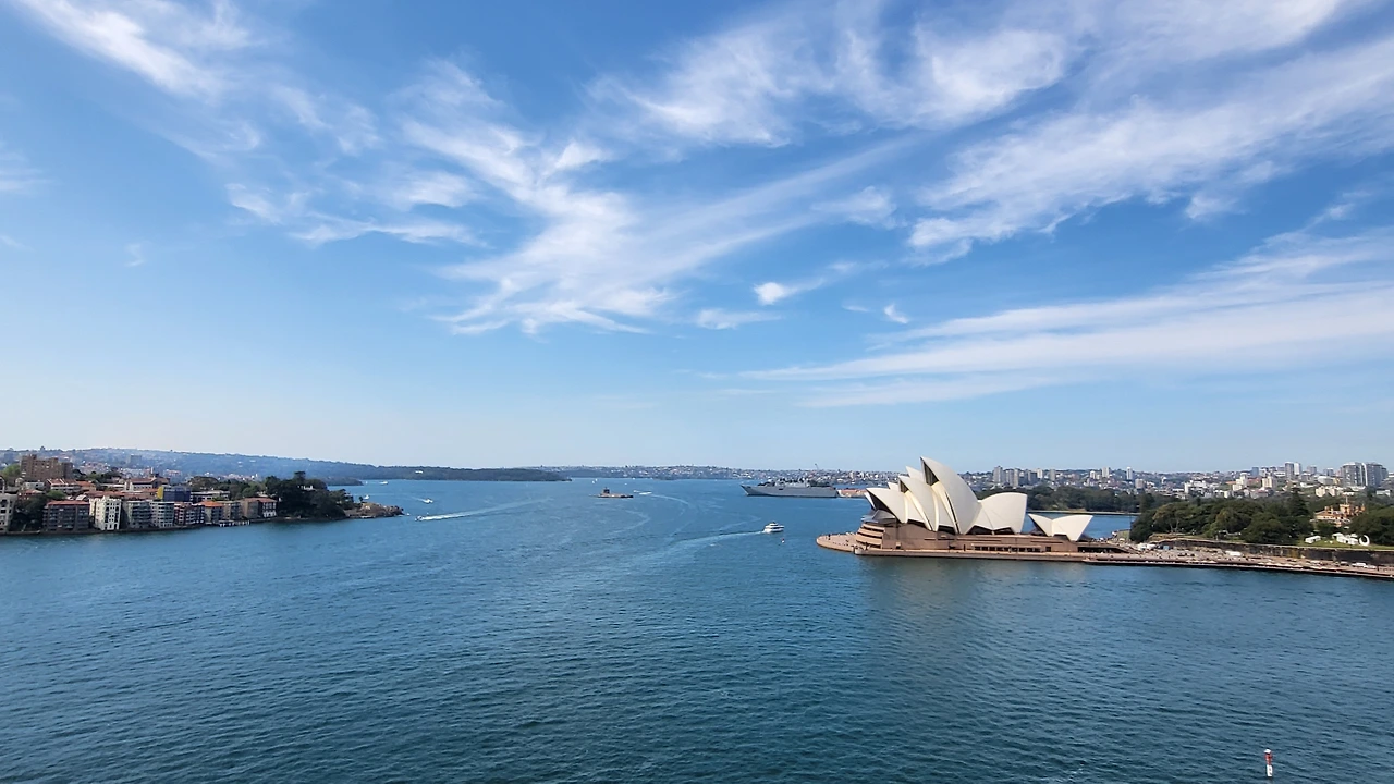 Great buildings promise solace for the eye, though great halls entice with sound. The Sydney Opera House combines these elements together. My eyes immediately followed sandstone bases, dark inner shells, and white turfs, making up Australia's iconic landmark. The building was pressed against the gentle, calming oceans in harmony with the crimson, pink sky, illuminating with the Sydney Harbour Bridge. I could see the individual, hand-made tiles coating the shells, marking the significance of this extraordinary structure.