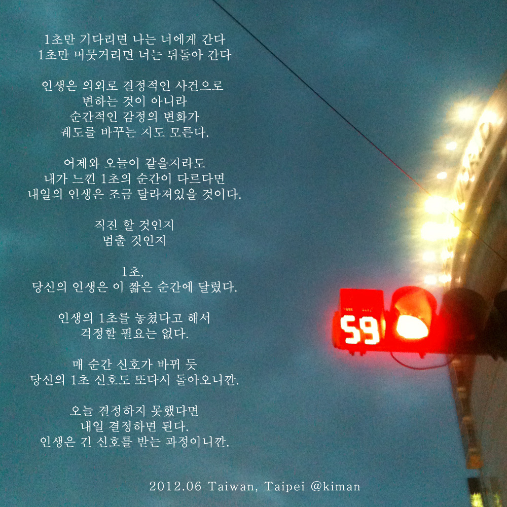 매 순간 신호가 바뀌듯 당신의 1초 신호도 또다시 돌아오니깐.