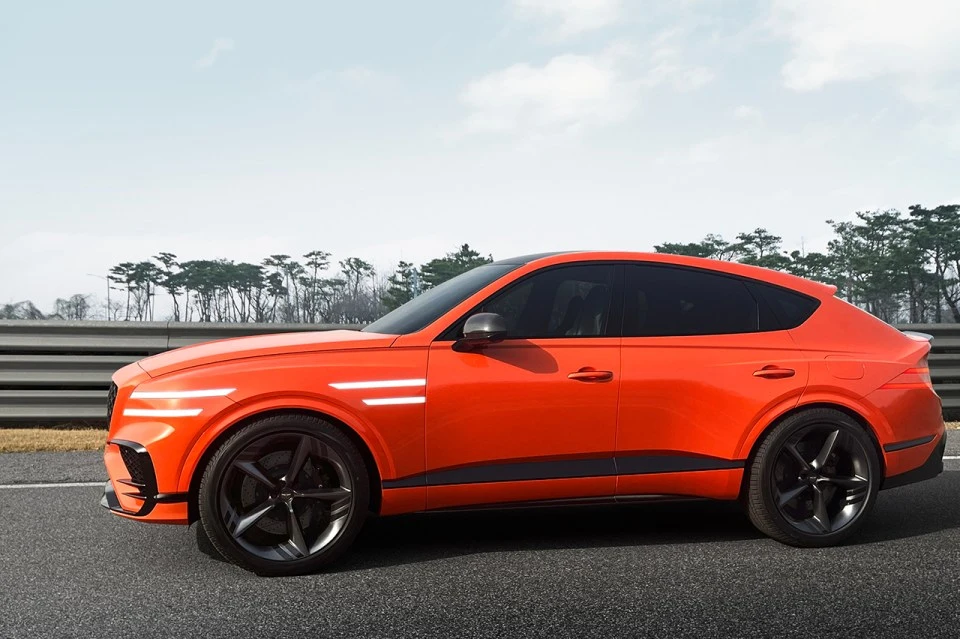 최근 독이 뉘르부르크링 서킷과 주변 도로에서 포착된 GV80 쿠페 테스트카는 유려한 루프라인과 신규 22인치 휠, 그리고 등화류 디자인의 세부 디테일을 확인할 수 있다. 특히 변경된 루프 라인과 함께 새롭게 적용된 보조제동등 위치가 눈에 띈다.