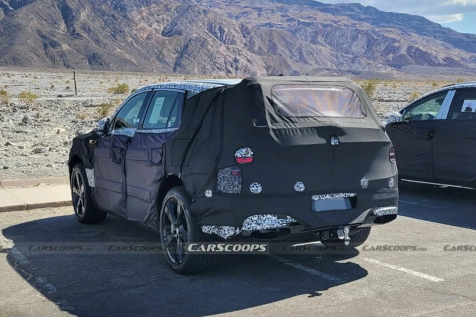 해외 자동차 전문 매체 카스쿱스(Carscoops)에 게재된 제네시스 GV90 테스트카는 두꺼운 위장막에 씌워진 채 미국 데스벨리에서 포착됐다. 위장막 사이로 확인된 디자인 요소들은 GV80과 매우 유사하지만, 카스쿱스는 순수 전동화 모델로 출시할 GV90이라고 밝혔다.