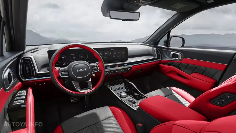 AUTOYA가 공개한 쏘렌토 GT 렌더링 이미지는 신형 쏘렌토의 디자인을 기반으로 EV9 GT 라인의 디자인이 가미된 것이 특징이다. 블랙 컬러로 마감된 라디에이터 그릴을 적용해 스포티한 분위기를 연출했고, 범퍼 하단 세로형 가니시와 에어 인테이크는 EV9 GT 라인과 유사하다.