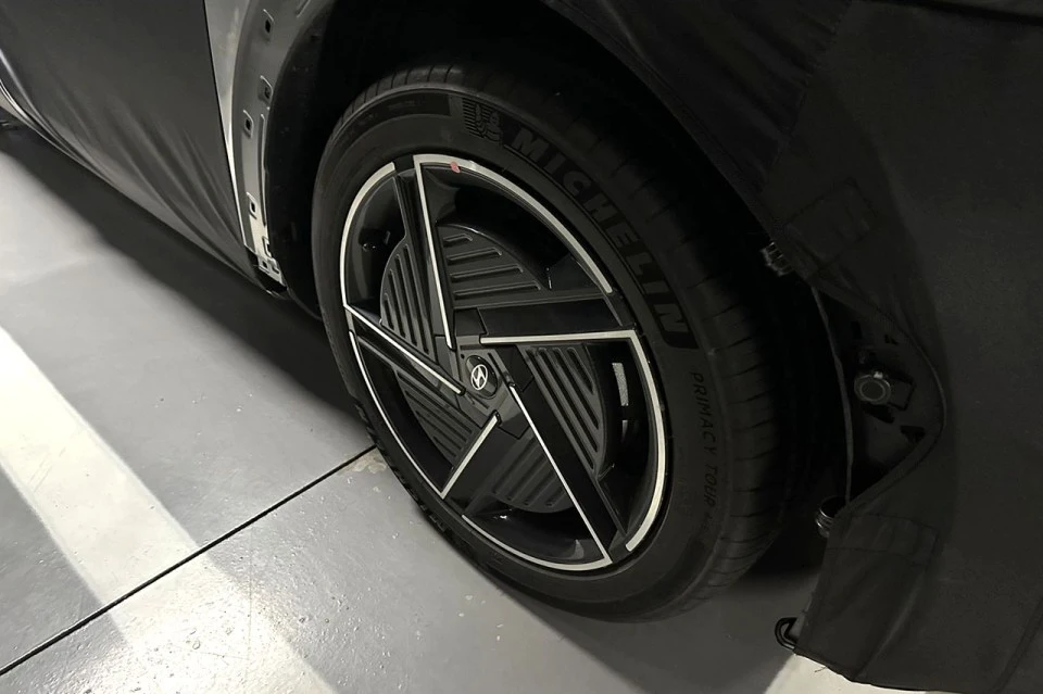 현행 아이오닉 5의 상위 트림에 적용되고 있는 20인치 휠은 파라메트릭 픽셀 패턴이 적용된 차폐형 에어로 디자인이 적용됐다. 이번 페이스리프트 모델은 바람개비 형태의 5 스포크 휠 디자인에 원판을 덧댄 형태의 에어로 휠이다.