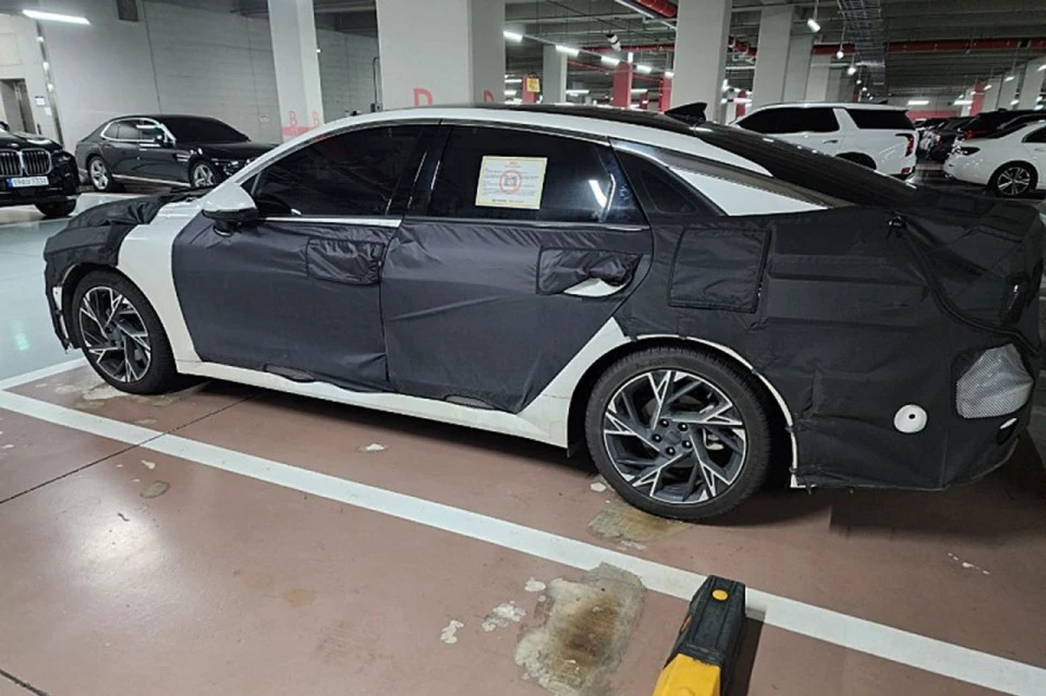 국내 주차장에서 포착된 K5 페이스리프트 테스트카는 두꺼운 위장막에 가려져 있지만, 일부 디자인 요소를 확인할 수 있다. 헤드램프는 기존과 유사한 형태인데, 주간주행등이 램프 상단으로 이동했으며, 범퍼쪽에 안개등이 적용된 것으로 보인다.
