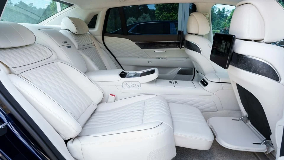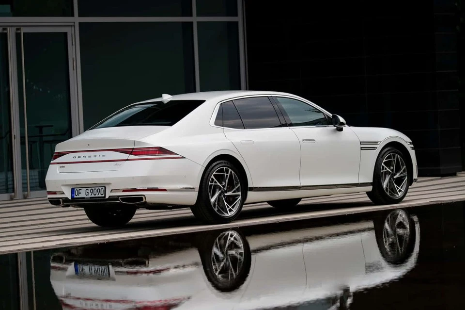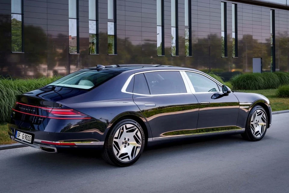 제네시스 G90은 브랜드 플래그십 세단으로 웅장한 크레스트 그릴과 하이테크한 분위기를 연출하는 MLA(Micro Lens Array) 타입 LED 램프가 적용된 것이 특징이다. 또한 롱휠베이스 모델의 경우 일반 모델 대비 190mm 더 넓은 레그룸을 제공해 최고의 2열 공간을 제공한다.