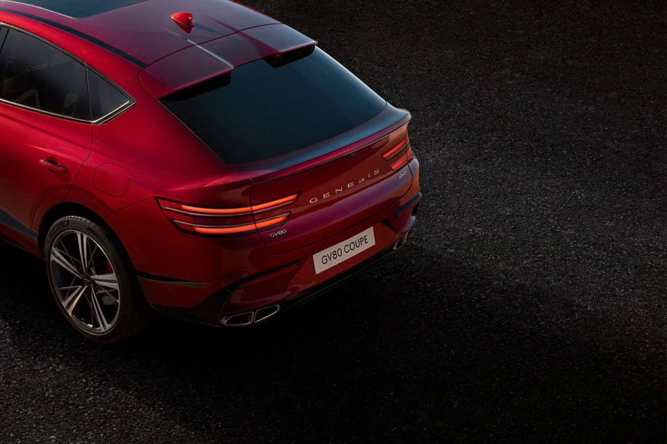 또한 실버와 블랙 투 톤의 스포티한 리어 범퍼와 크레스트 그릴 형상의 듀얼 트윈 머플러의 조화는 고성능 쿠페형 SUV 이미지를 연출하며, GV80 쿠페는 쿠페 전용 색상인 베링 블루를 포함한 총 13종의 외장 컬러로 운영된다.