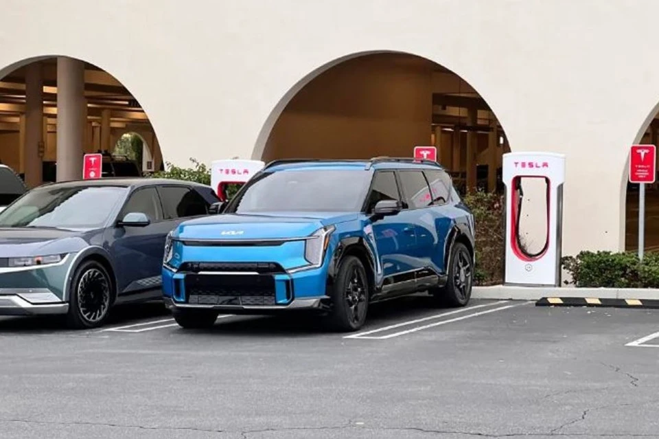 최근 미국 캘리포니아주 산클레멘테에 위치한 테슬라 슈퍼차저 충전소에서 현대차 아이오닉 5, 아이오닉 6, 기아 EV9, 제네시스 GV60 등 현대차그룹 주요 전기차 모델이 충전 중인 모습이 확인됐다.