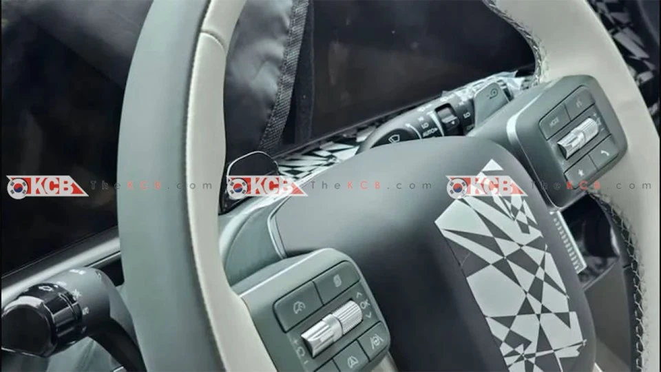 이번에 새롭게 포착된 아이오닉 7의 실내 스파이샷을 통해 새롭게 적용되는 사양들 일부를 확인할 수 있다. 가장 먼저 아이오닉 7에는 신형 싼타페와 유사한 디자인의 스티어링 휠이 적용되며, 새롭게 디자인된 칼럼식 기어 레버가 적용된다.