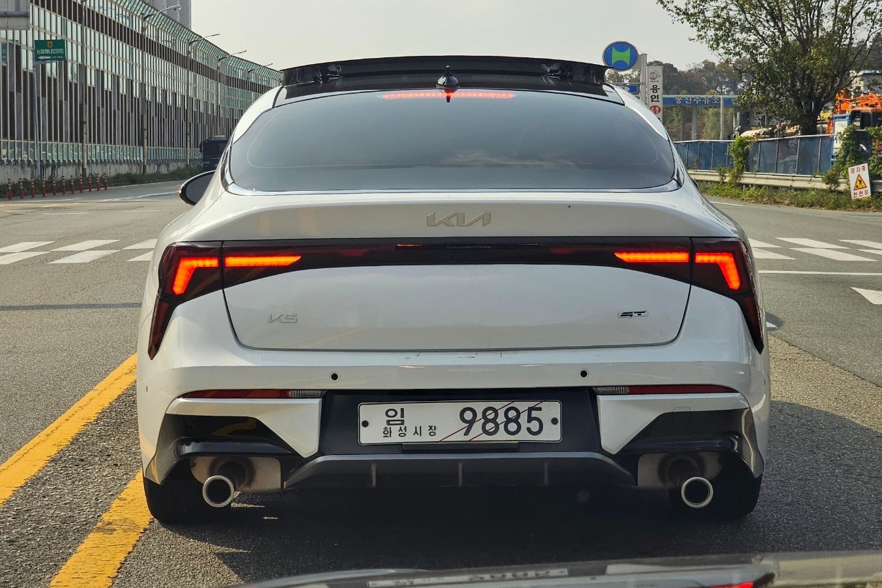 기아 K5 GT는 2.5리터 가솔린 터보 엔진이 탑재되는 고성능 모델이다. 현대차 쏘나타 N 라인과 경쟁하는 모델로 듀얼 머플러 등 일반 모델 대비 스포티한 디자인이 반영되는 것이 특징이다. 포착된 K5 GT 테스트카 역시 양산차 마감과는 다르지만 듀얼 머플러가 적용된 것을 확인할 수 있다.