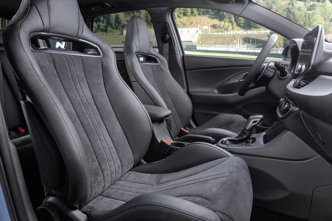 시트 역시 국내 벨로스터 N과 동일한 N 라이트 버킷 시트옵션이 제공된다. 기존 시트보다 2.2kg 가볍고, 사이드 볼스터로 우수한 지지력을 제공한다. N 라이트 버킷 시트는 알칸타라와 가죽 소재로 제작되었고, 헤드레스트 하단에 N로고 조명이 적용되어 고급감을 더했다.