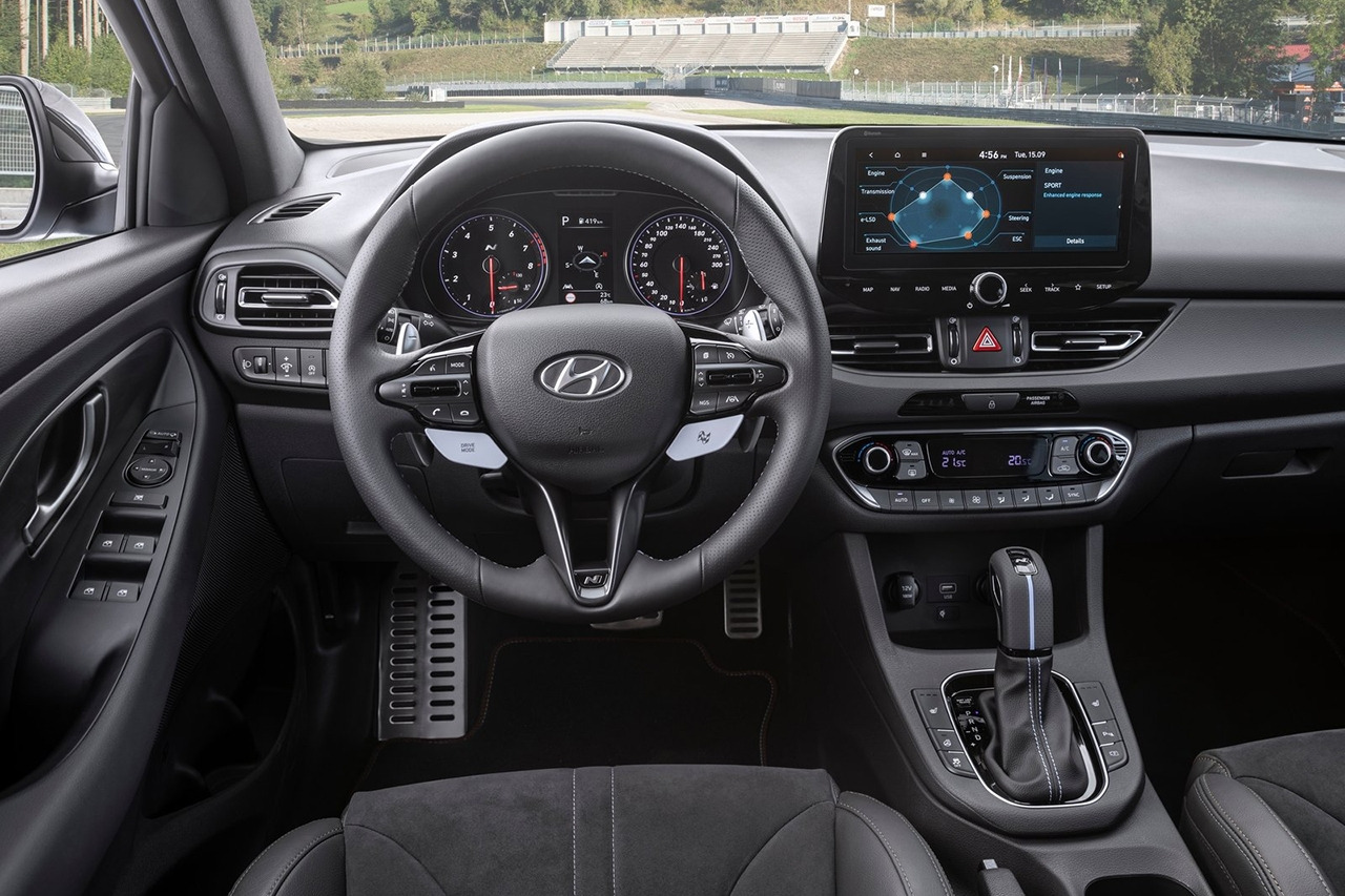 실내는 기존의 레이아웃을 그대로 유지하며, 디테일한 변화를 이뤄냈다. 기존 8인치 인포테인먼트 디스플레이는 10.25인치로 변경됐고, 송풍구 내부에 반광 크롬 디자인을 삽입해 포인트를 줬다. 이외에 일반 i30, i30 N 라인 모델의 경우 디지털 계기판으로 변경됐지만, i30 N은 아날로그 계기판을 유지했다.
