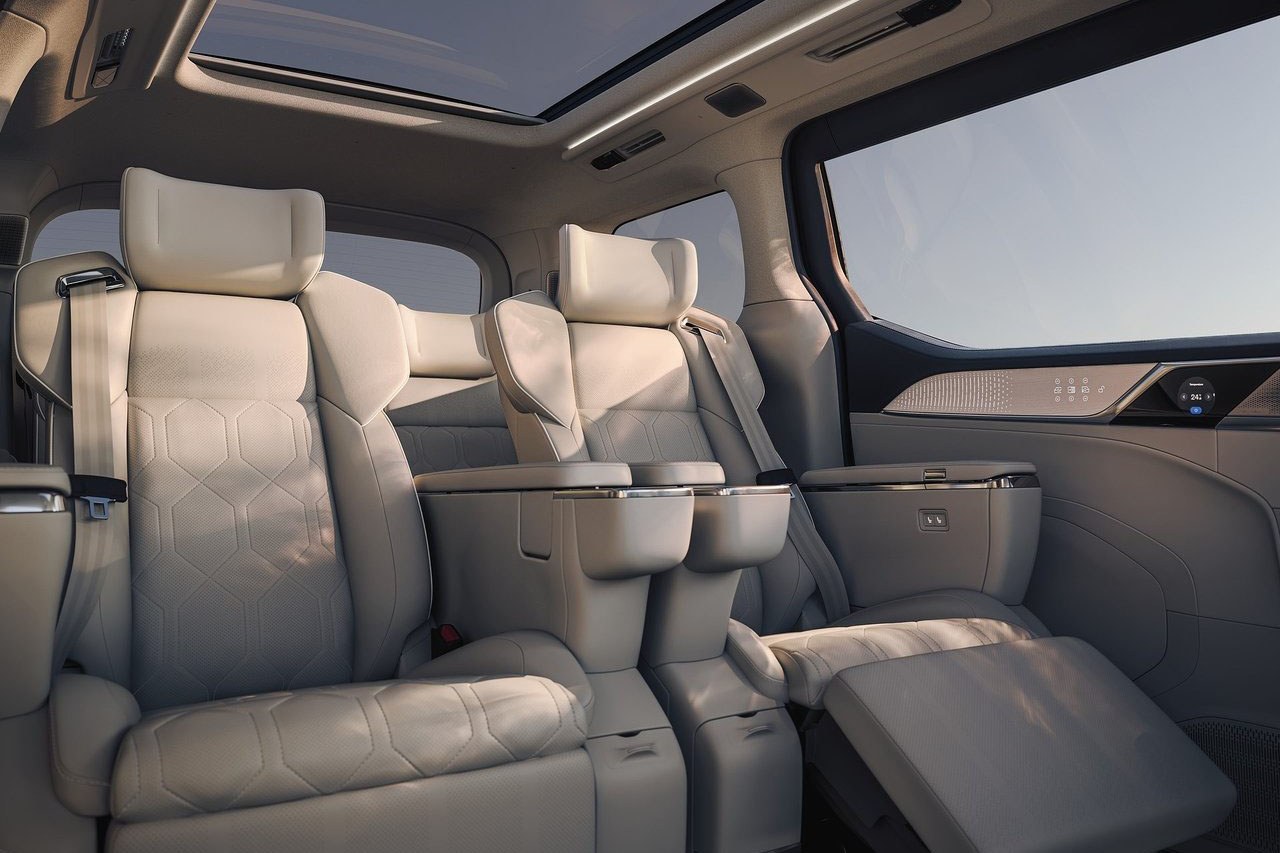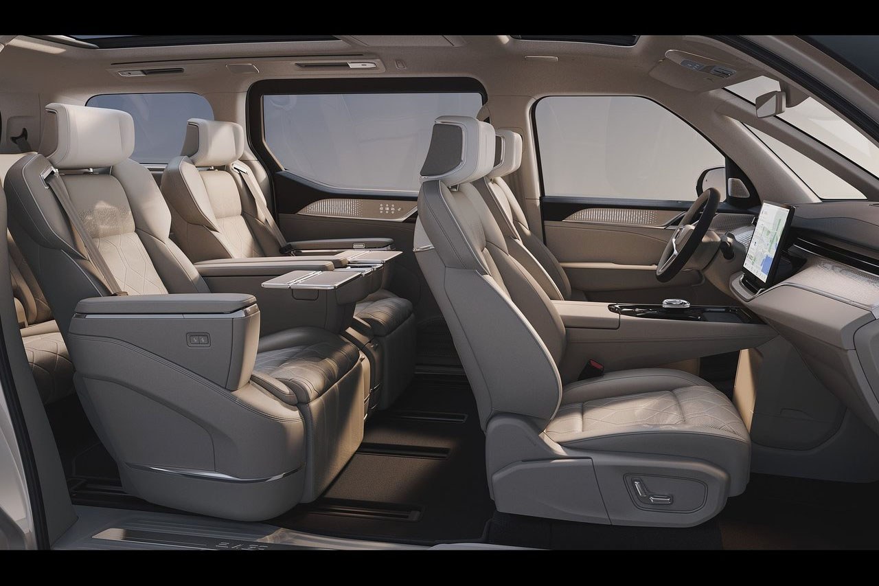 EM90 실내는 고급스러운 라운지 시트와 대형 파노라믹 선루프를 적용해 개방감 있고 럭셔리한 분위기를 연출한다. 운전석은 10.25인치 디지털 클러스터와 15.4인치 인포테인먼트 디스플레이를 적용해 간결하고 하이테크한 디자인을 완성했다.