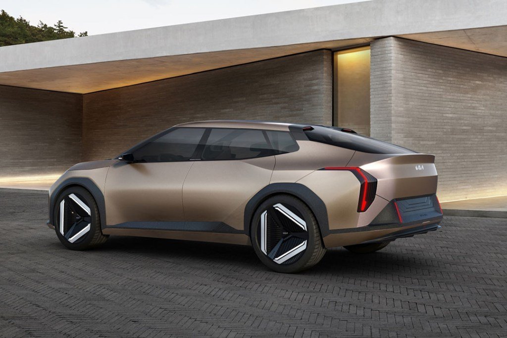 기아 EV5는 EV6보다 한 체급 아래 전기 세단 모델이다. 전반적으로 EV6와 유사한 측면 라인을 갖고있으나, 길게 빠지는 루프 라인이 EV4만의 특징이다. 또한 공기역학 성능을 고려한 오토플러시 도어 핸들이 적용됐다.