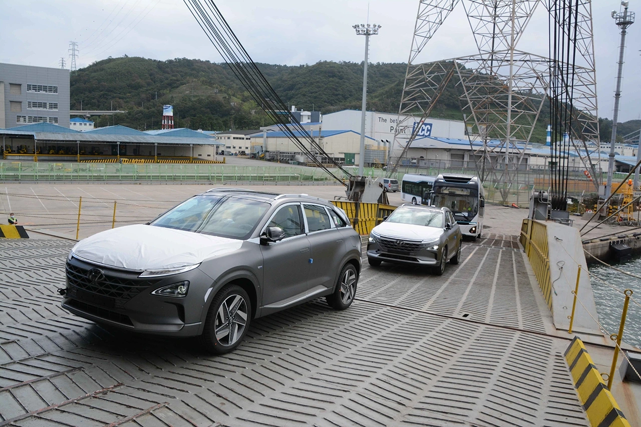 현대자동차는 27일(일) 울산항에서 수소전기차 ‘넥쏘’ 2대, 수소전기버스 ‘일렉시티 FCEV’ 2대 등 총 4대를 선적해 사우디 아라비아로 수출했다고 밝혔다. 이날 선적한 ‘넥쏘’와 ‘일렉시티 FCEV’는 사우디 아라비아의 글로벌 종합 에너지 화학 기업인 사우디 아람코(Saudi Aramco)로 인도된다.