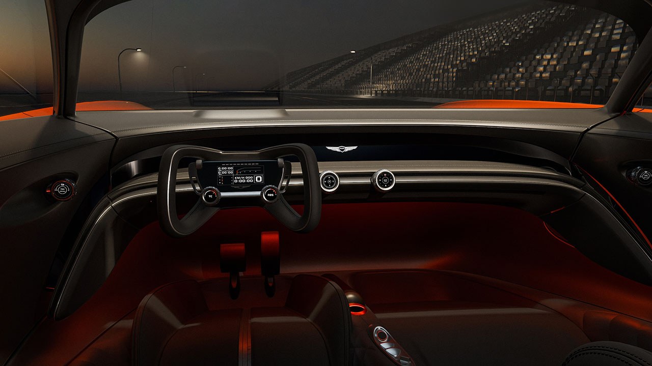 실내 공간은 운전자 위주의 설계를 통해 제네시스만의 여백의 미를 보여준다. 정보 센터 역할을 하는 디지털 파노라마 인터페이스를 탑재해 레이스 트랙에서의 운전 집중도를 한층 더 끌어올렸다.