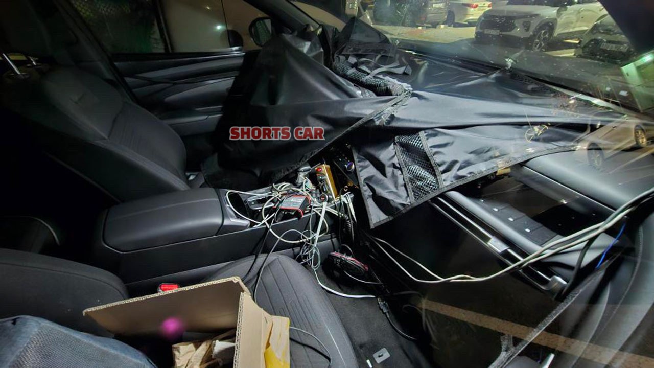 실내는 위장막으로 대부분 가려져 있지만, 브리지 타입 센터 콘솔이 적용된 것으로 보이며, 파노라믹 디스플레이 기반의 현대차 최신 레이아웃이 적용될 것으로 기대된다.