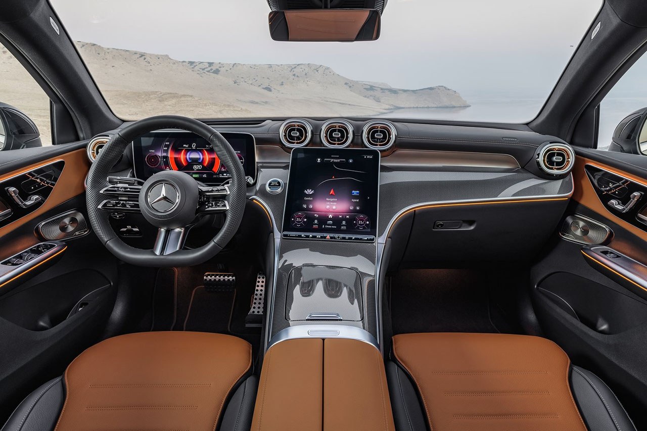 더 뉴 GLC 쿠페는 12.3인치 디지털 클러스터와 운전석 쪽으로 살짝 기울어진 11.9인치 인포테인먼트 디스플레이를 배치했으며, 최신 텔레메틱스 NTG7이 적용된 2세대 MBUX 인포테인먼트 시스템이 탑재됐다.