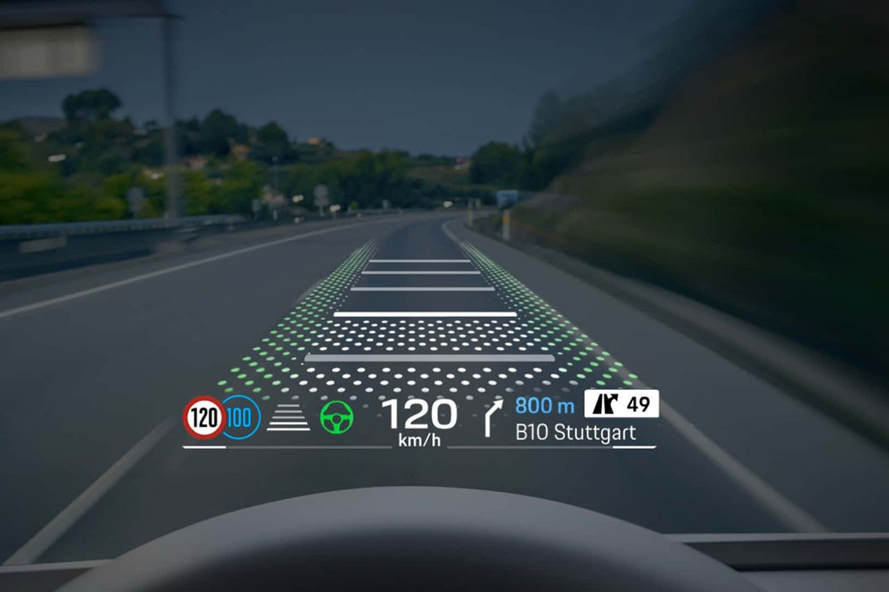 포르쉐 마칸 EV에 적용된 증강현실 HUD는 앞 차량과의 거리, 방향 표시 등의 기능을 표시하며, 유리를 통해 보는 이미지는 무려 87인치에 달한다. 또한 전방 약 9.1m(30피트) 이상의 공간감을 주는 등 우수한 시인성을 자랑한다.