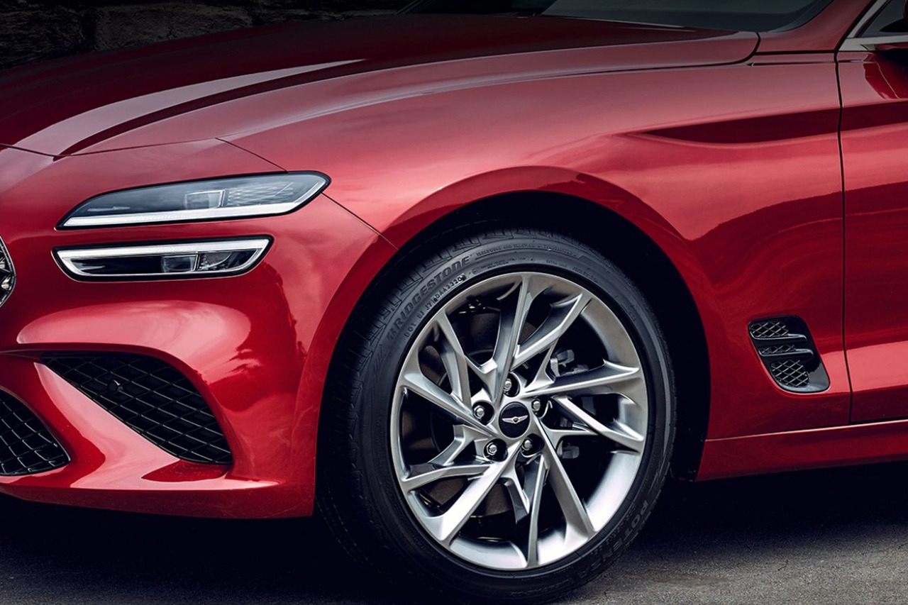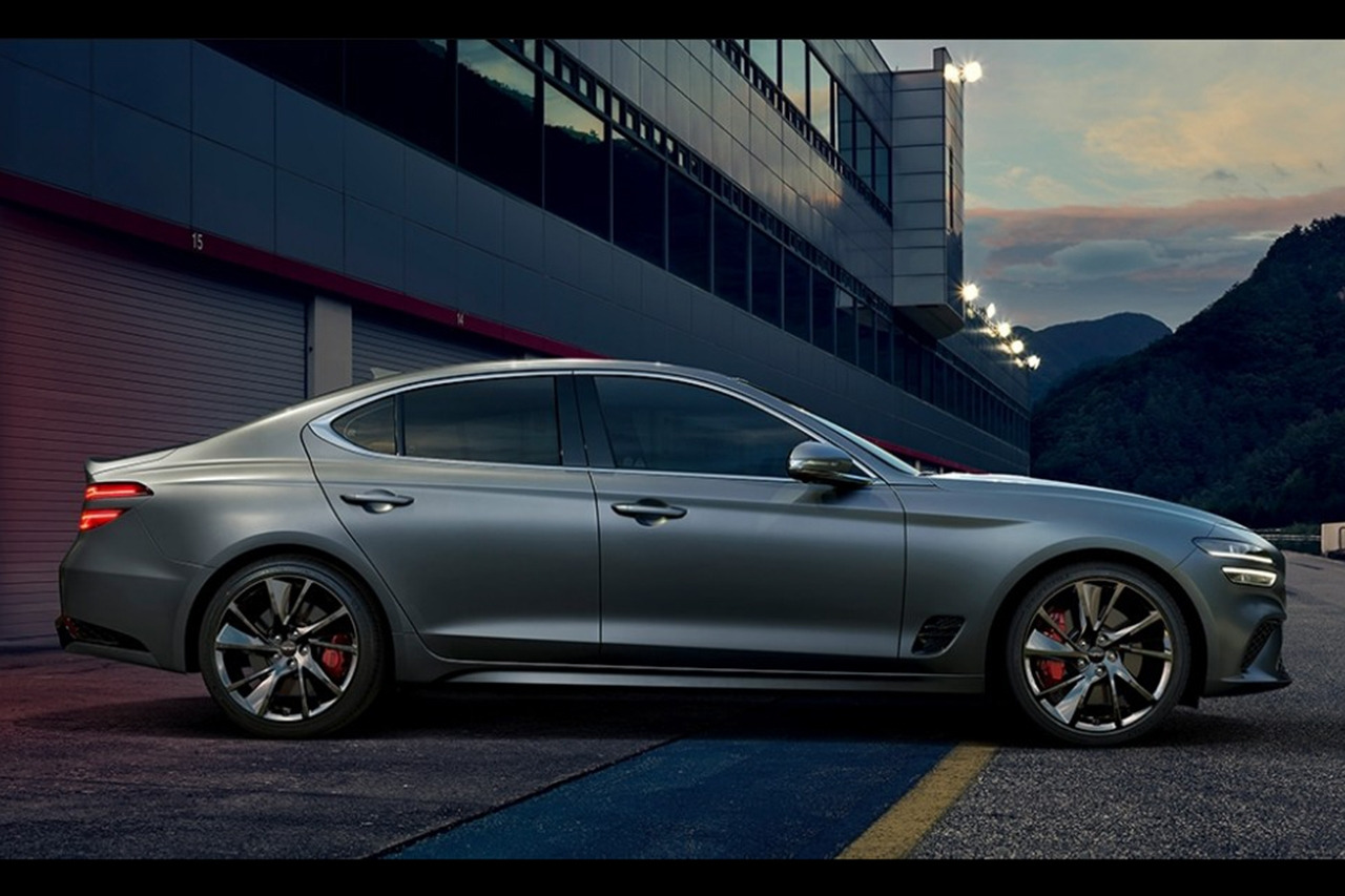 측면부는 긴 후드와 짧은 전방 오버행으로 표현한 기존 G70의 역동적인 비율을 계승하고 공력 효율에 최적화된 사이드 벤트와 신규 G70 전용 휠을 적용해 민첩한 주행성능을 시각적으로 구현했다.