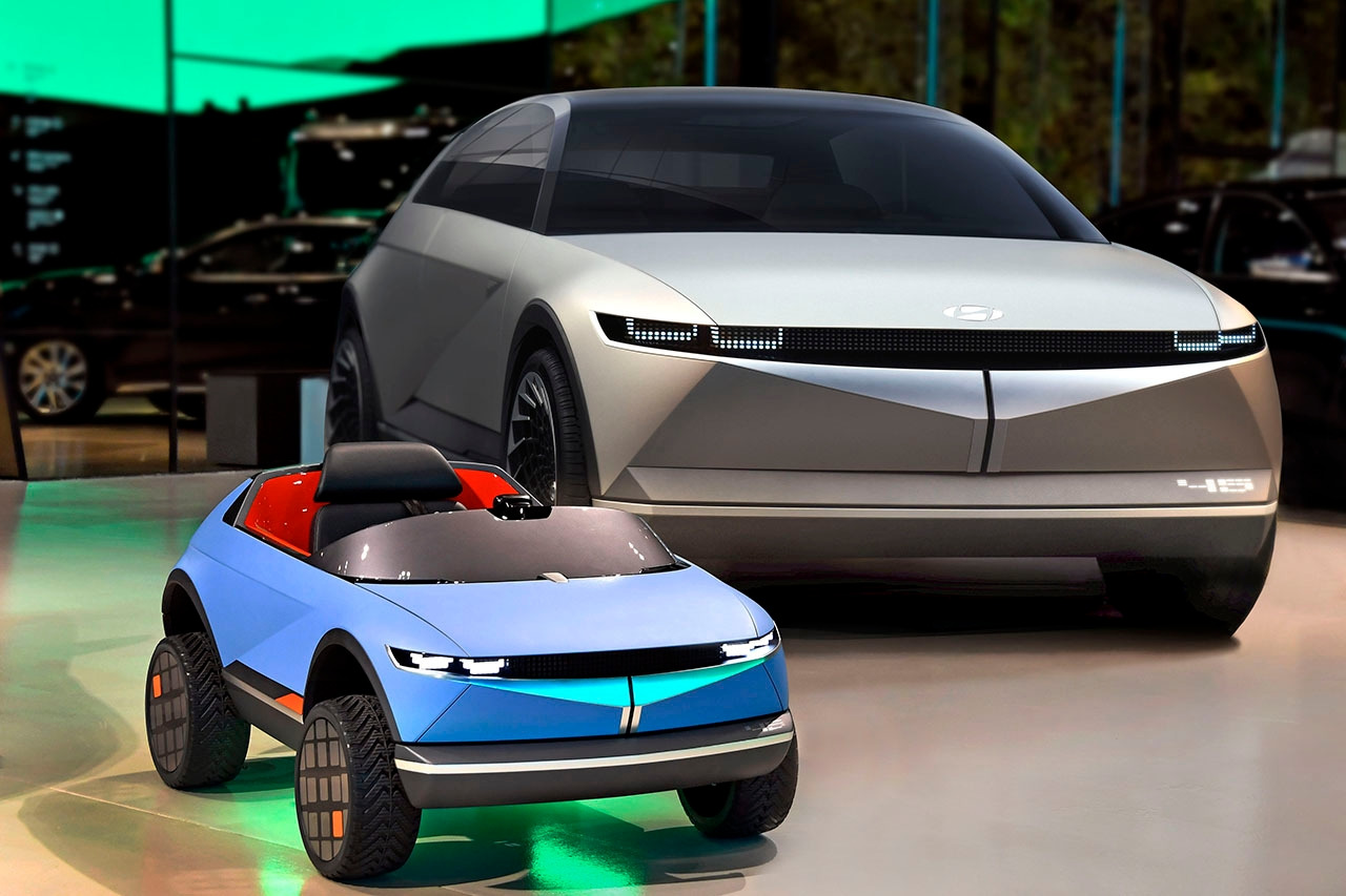 현대자동차그룹이 EV 콘셉트카 45 디자인을 활용해 제작한 어린이 전동차의 이미지와 제작 과정 영상을 27일(화) 최초로 공개했다. 이번에 공개된 어린이 전동차는 콘셉트카 45의 독특한 디자인 요소가 그대로 녹아 있다.