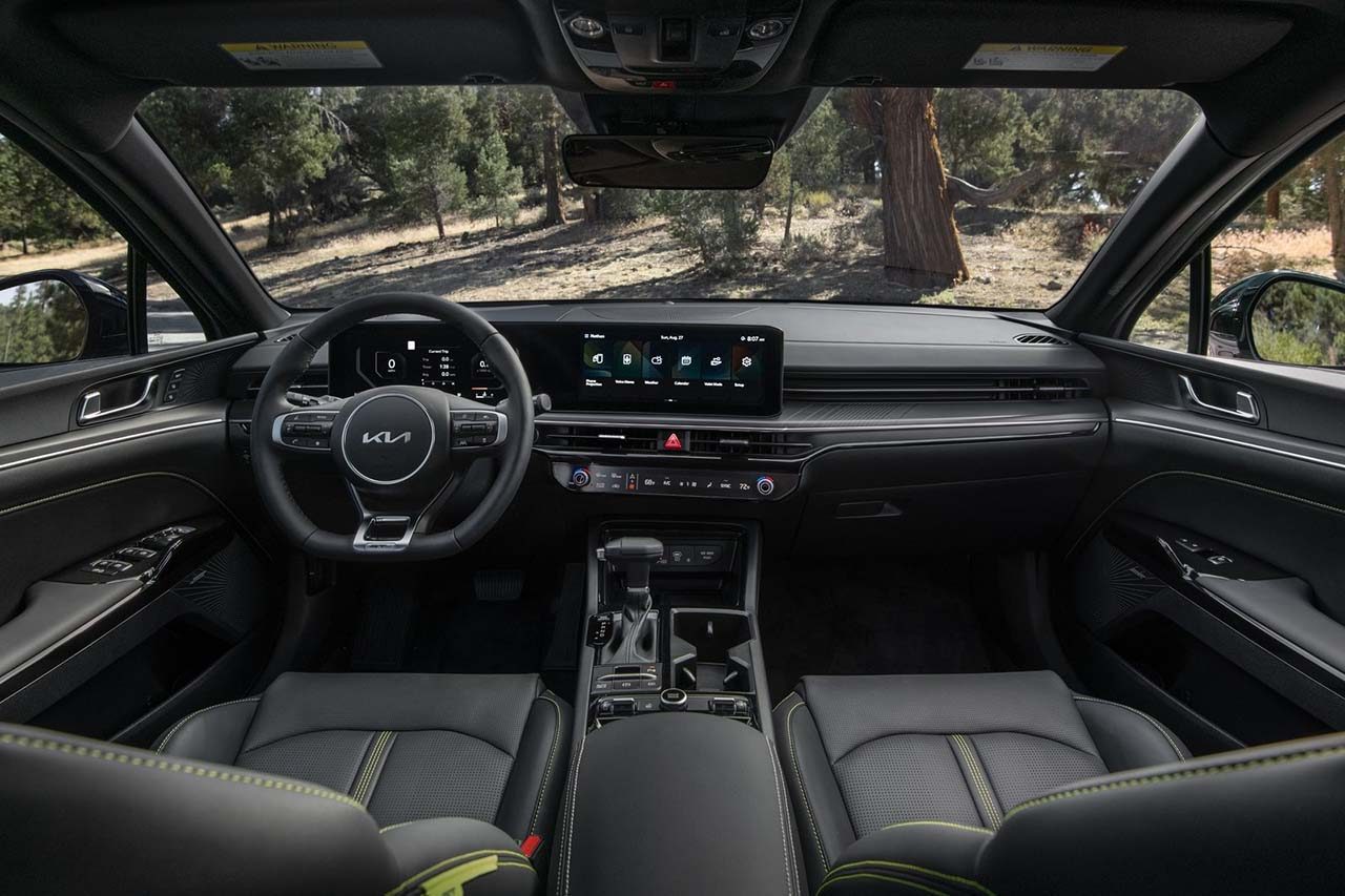 실내 역시 스티어링 휠 하단에 GT 로고가 삽입되며, 시트에 형광 그린 컬러 스티치가 추가된다. 또한 북미형 K5에는 노브타입 기어 레버가 적용되어 직관적인 사용성을 제공한다.