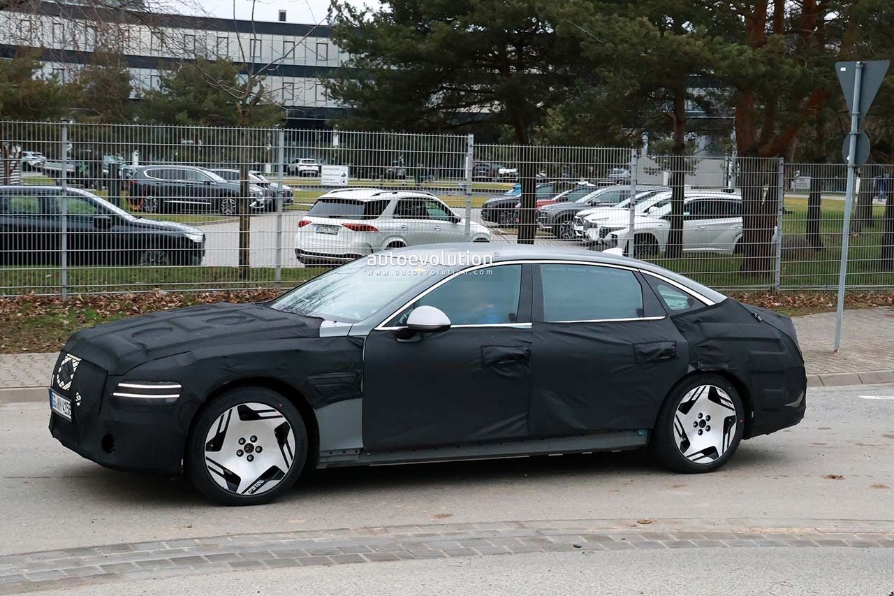 해외에서 포착된 G80 롱휠베이스 모델은 두꺼운 위장막에 가려져 있지만, 전동화 모델만의 디자인 포인트 일부를 확인할 수 있다. 가장 먼저 전면부의 차폐형 크레스트 그릴이다. 메쉬 그릴을 적용한 내연기관 모델과 전동화 모델의 가장 큰 차이점이다.
