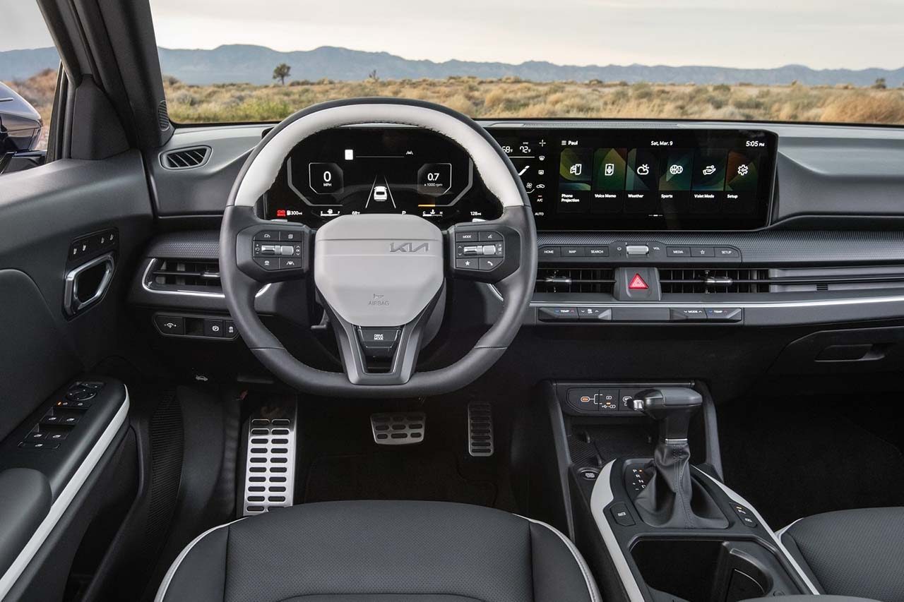 K4는 기아의 오퍼짓 유나이티드를 바탕으로 세로형 헤드램프와 스타맵 시그니처 라이팅을 기반으로 타이거 노즈 디자인을 적용한 준중형 세단이다. 실내는 EV9에서 먼저 선보인 12.3인치 디스플레이 두 개와 5인치 공조 디스플레이를 배치한 최신 레이아웃이 적용된다.