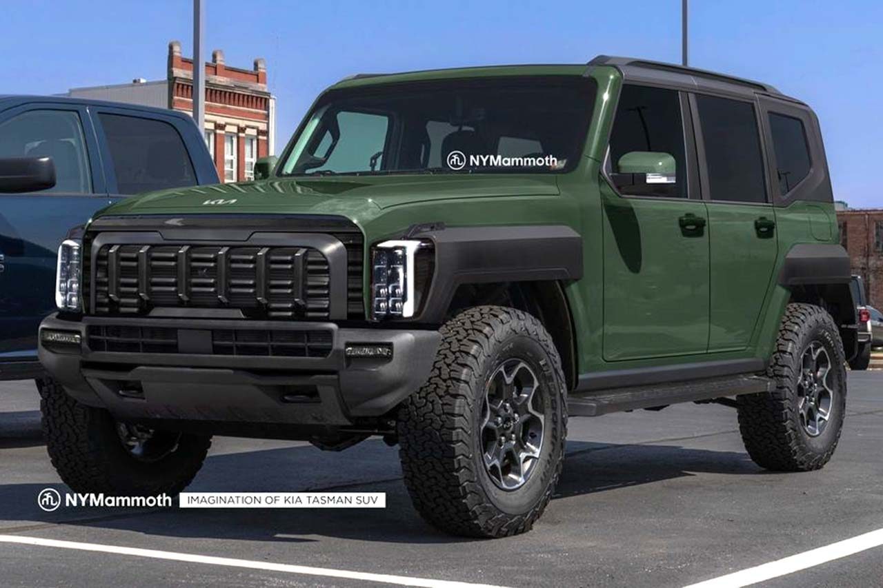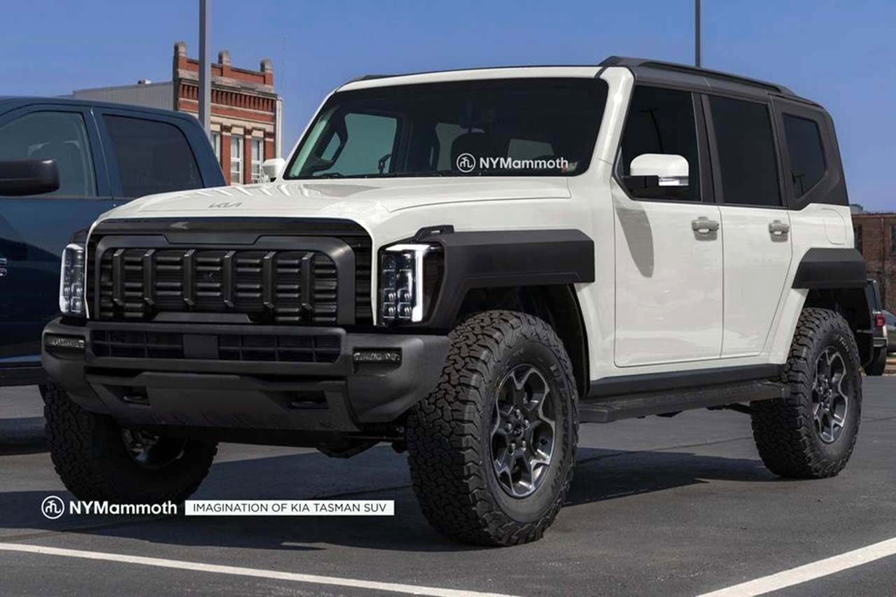 지난 23일 기아 브랜드 첫 번째 프레임 바디 기반 픽업트럭 ‘타스만’의 전용 위장막 차량이 공개된 가운데 타스만 디자인 기반 SUV 모델 상상도가 등장해 화제다.