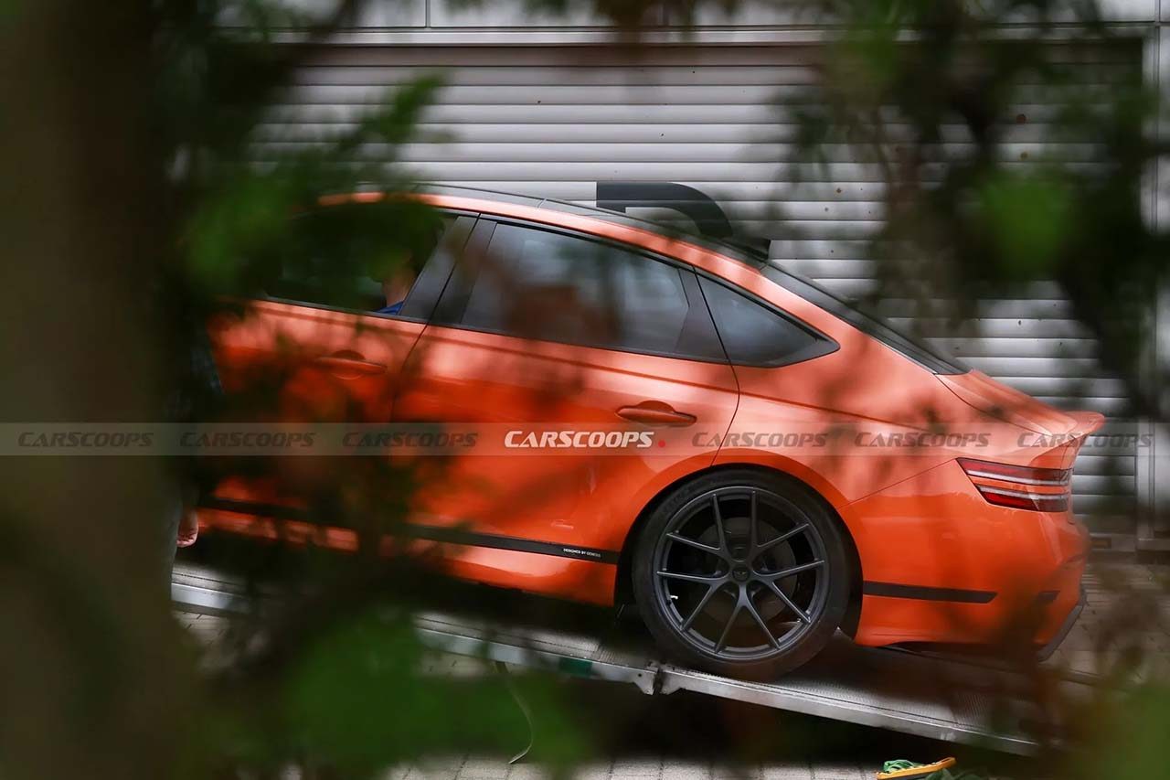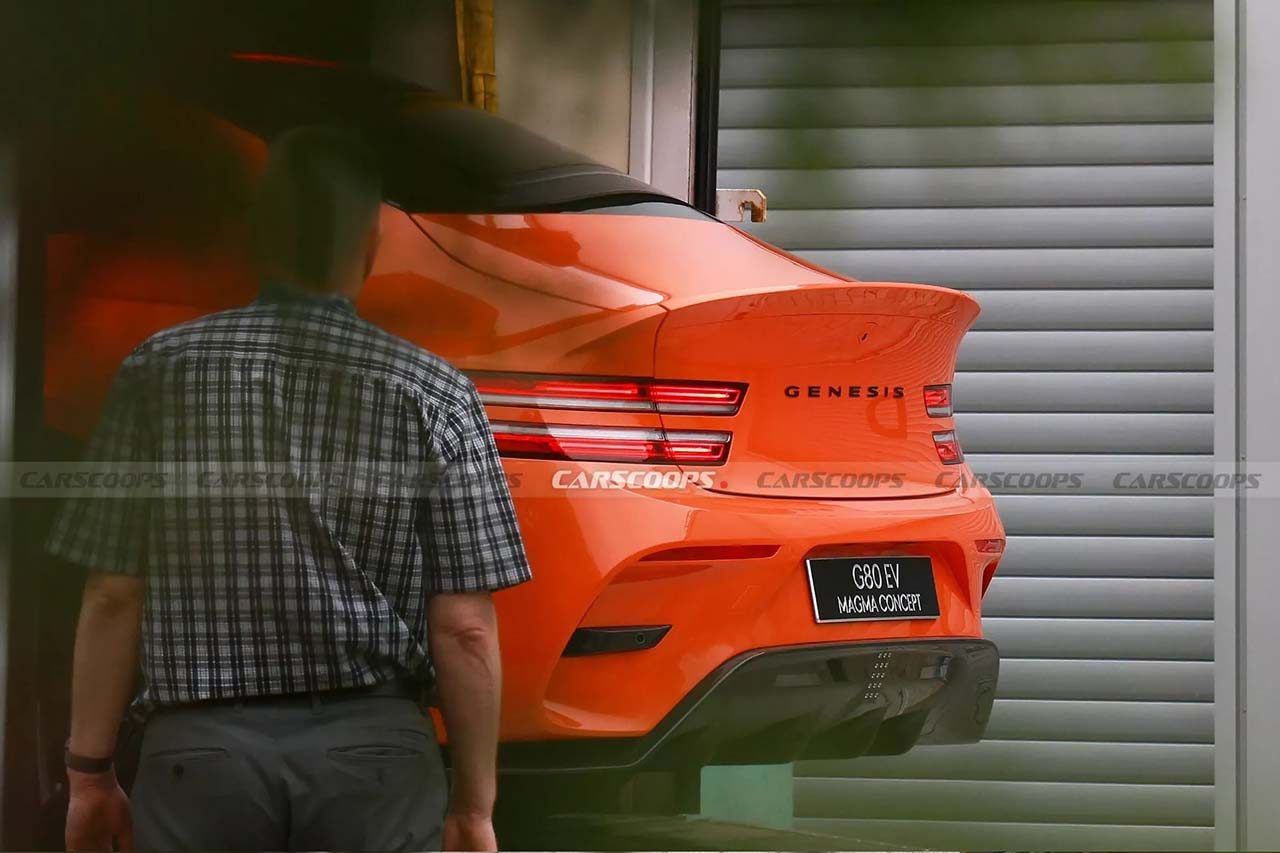 해외에서 포착된 G80 EV 마그마는 앞서 베이징모터쇼에서 선보였던 콘셉트 모델과 사뭇 다른 모습이다. 제네시스 마그마의 상징 색상인 오렌지 컬러가 적용됐으며, 스포츠성을 강조한 경량 휠이 적용된 것이 특징이다.