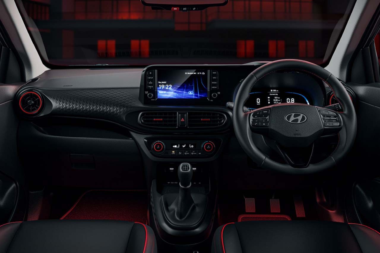 실내 역시 블랙 컬러를 중심으로 레드 스티치 및 장식을 적용한 것이 특징이다. 특히 양쪽 끝단 송풍구 테두리와 중앙 송풍구에 레드 컬러를 사용한 것이 눈에 띈다.