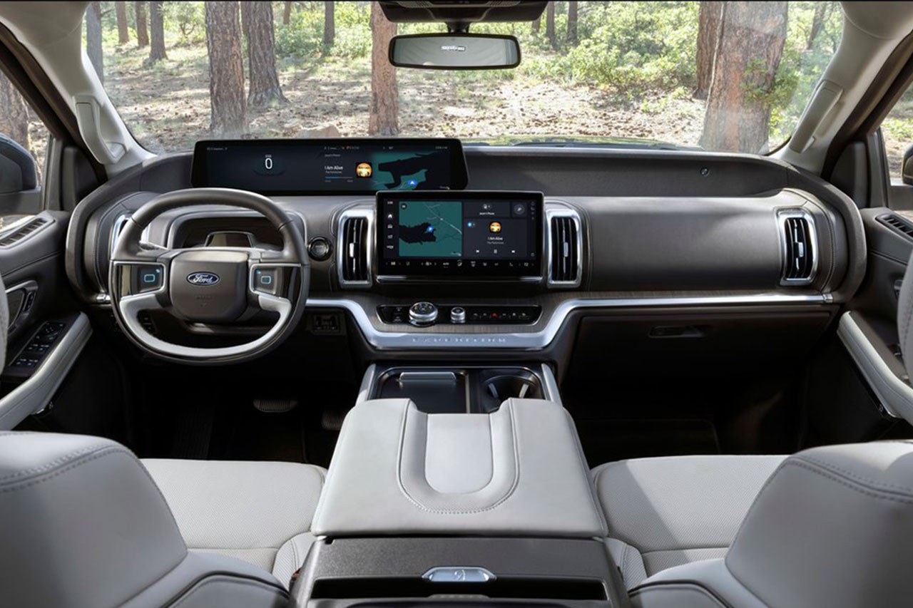 센터페시아 디스플레이는 공조기와 열선 등 전반적인 차량 기능 제어를 담당하며, 앞뒤로 최대 200mm 이동이 가능한 플렉스 파워드 콘솔을 통해 2열 탑승객의 승하차 편의가 개선됐다. 시트 헤드레스트 후면엔 스마트폰, 태블릿 pc를 장착할 수 있는 홀더가 탑재됐다. 이번 익스페디션에는 상하 분할 오픈형 트렁크가 탑재됐다. 하단 테일게이트는 최대 227kg을 지탱해 좌석으로 사용할 수 있다.