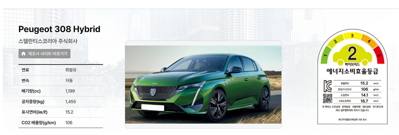 푸조 신형 308 마일드 하이브리드의 국내 인증이 완료됐다. 한국에너지공단에 따르면 신형 308 마일드 하이브리드는 복합연비 15.2km/L를 달성했다 밝혔다.
