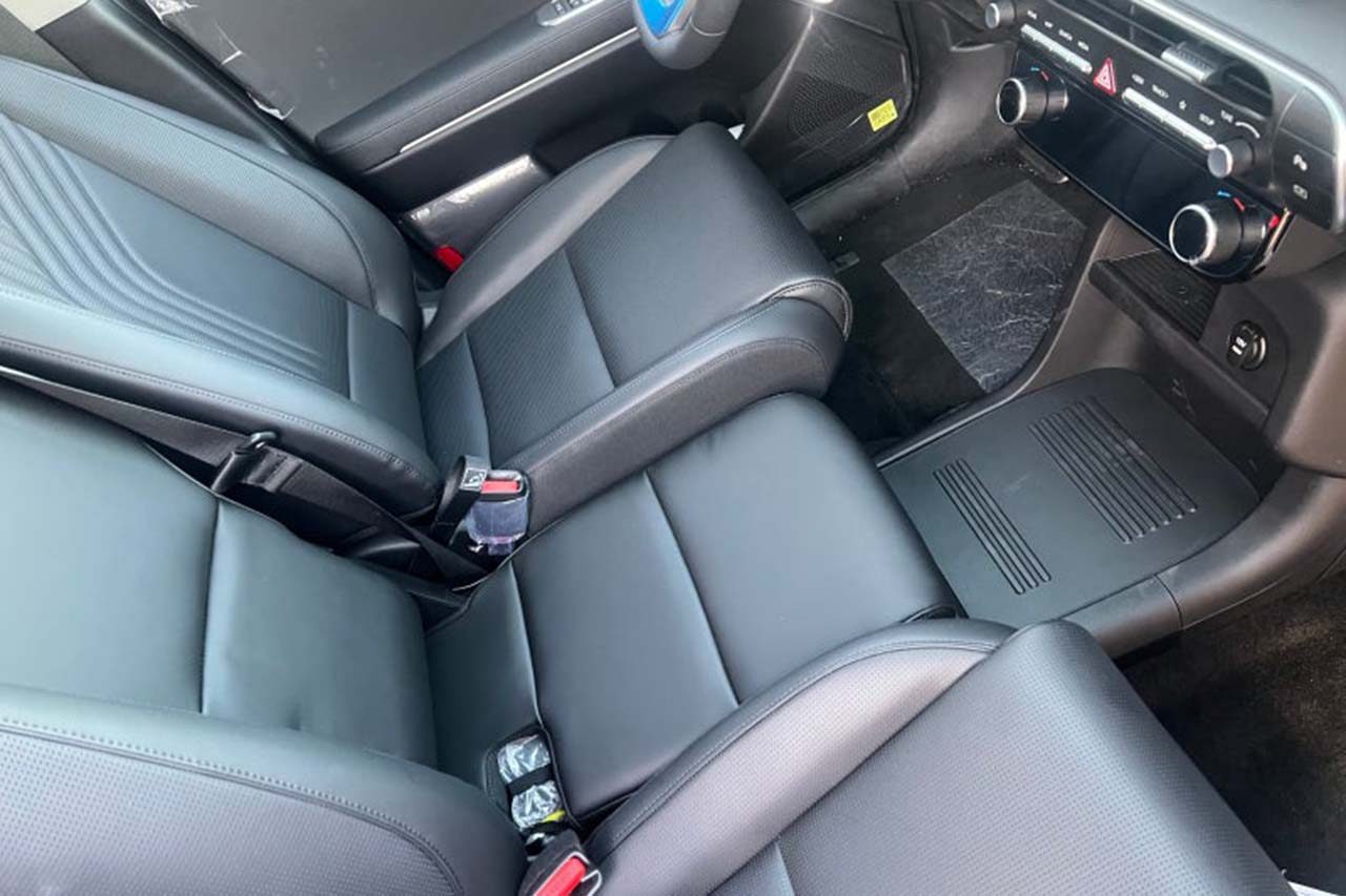 2열에서 바라봤을 때에는 기존 센터콘솔 상단부에 위치한 무선충전 패드 및 컵홀더 가 등받이에 위치한 것을 확인할 수 있다. 별도 커버가 없는 만큼 시트 사용을 위해서는 패드 및 컵홀더에 넣어 놓은 소지품을 미리 치워야하는 불편함이 있다.