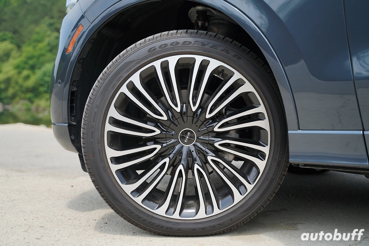 에비에이터에는 모든 트림에 22인치의 대형 휠이 적용되는데 큰 차체와 제법 잘 어울린다. 다만 블랙 레이블 트림에는 전용 디자인이 반영된 22인치 휠과 보디 색상의 사이드 몰딩이 적용되어 고급감을 더했다.