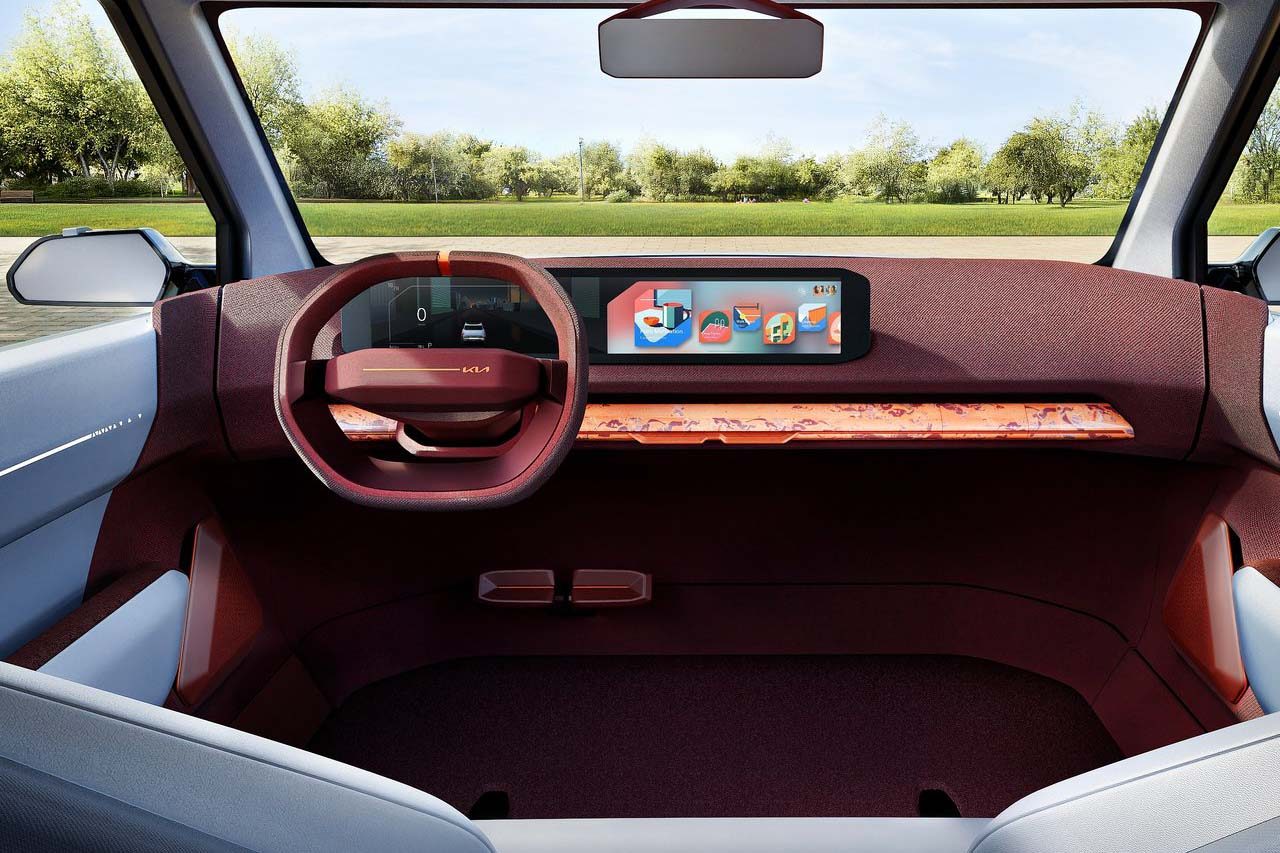 EV2 콘셉트의 실내는 2열 시트를 접고 1열 시트를 최대한 뒤로 이동시킬 수 있어 1열을 다양하게 활용할 수 있는 것이 특징이다. 또한 정차 시 1열 도어를 열고 벤치형 1열 시트를 좌우로 확장할 수 있도록 만들어 컴팩트 모빌리티의 대한 고정관념을 깨는 거주성과 활용성을 보여준다.