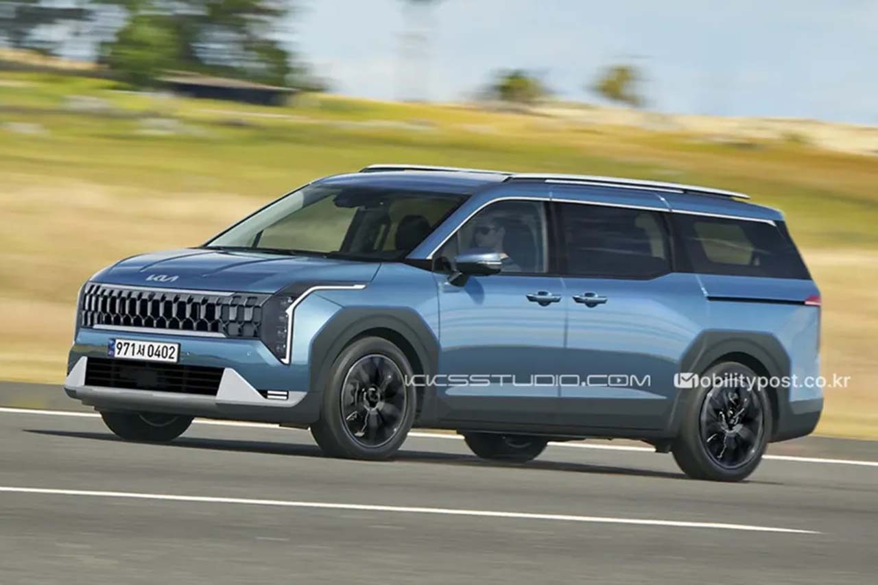신차 예상도 채널 ‘구기성스튜디오(KKSSTUDIO)가 공개한 신형 카니발 렌더링 이미지는 기아의 새로운 디자인이 반영된 전면부가 특징이다. 현행 카니발 역시 기아의 세로형 헤드램프와 스타맵 시그니처 라이팅 스타일이 반영됐는데, 렌더링 이미지 차량은 전기차 라인업의 램프 스타일이 반영됐다.