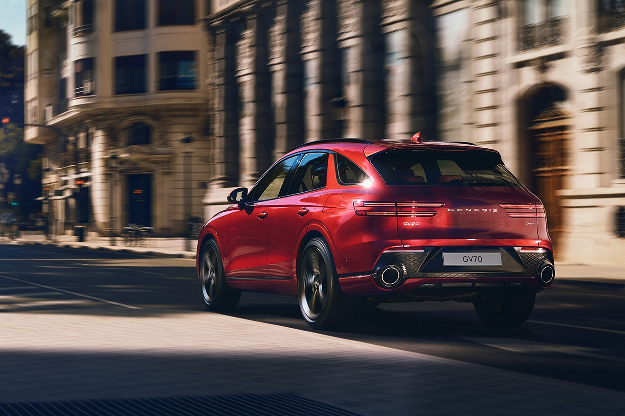 GV70는 제네시스의 디자인 영역을 확장하는 첫번째 중형 SUV 모델로 가장 역동적인 이미지를 강조한 외장 디자인과 제네시스 고유의 여백의 미를 가장 극적으로 살린 운전자 중심의 내장 디자인, 럭셔리 SUV다운 안정적인 주행감성과 운전의 즐거움을 주는 동력성능을 갖춘 것이 특징이다.