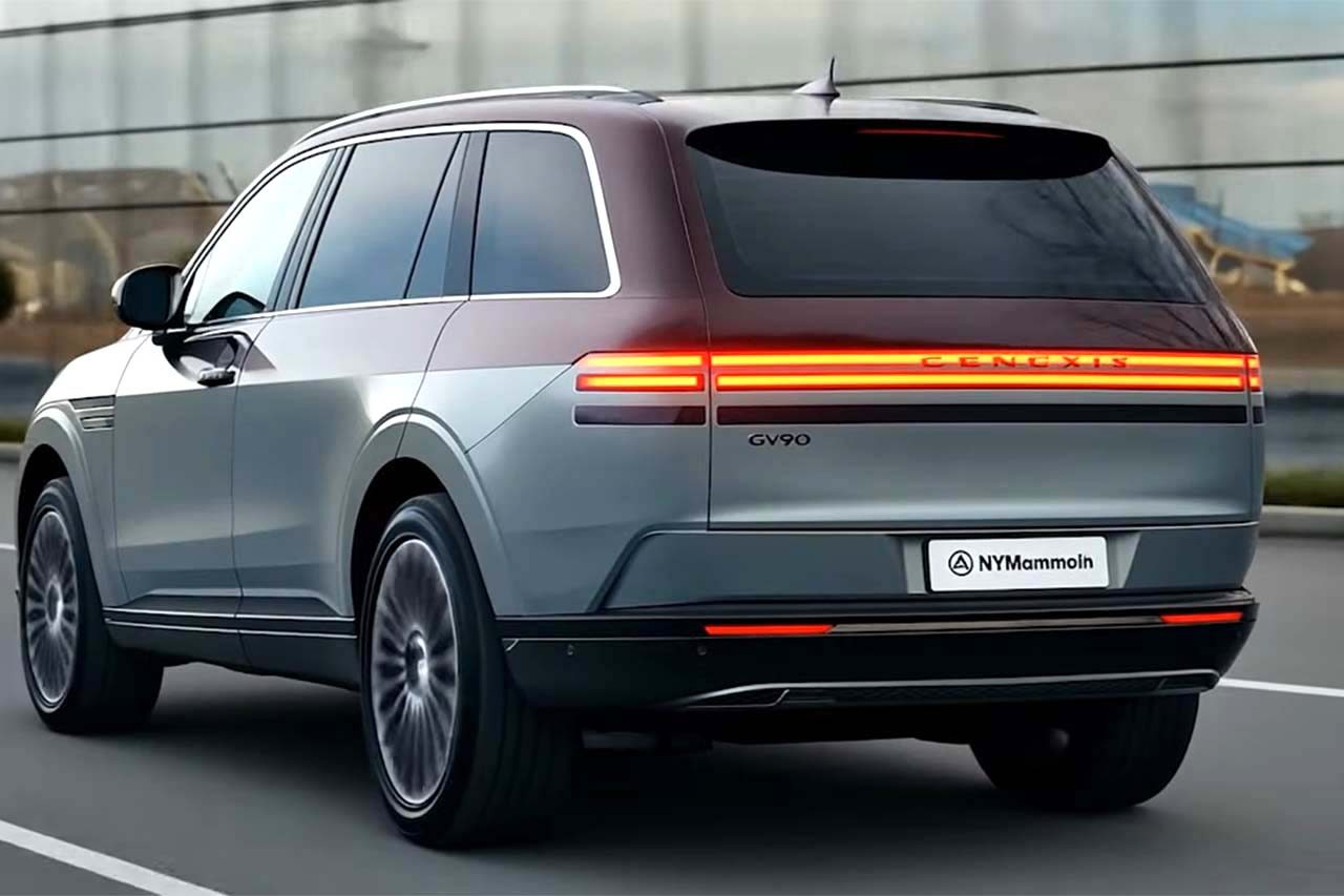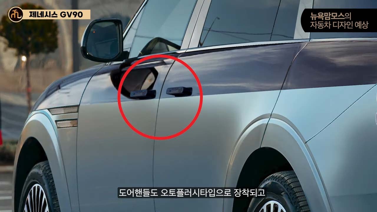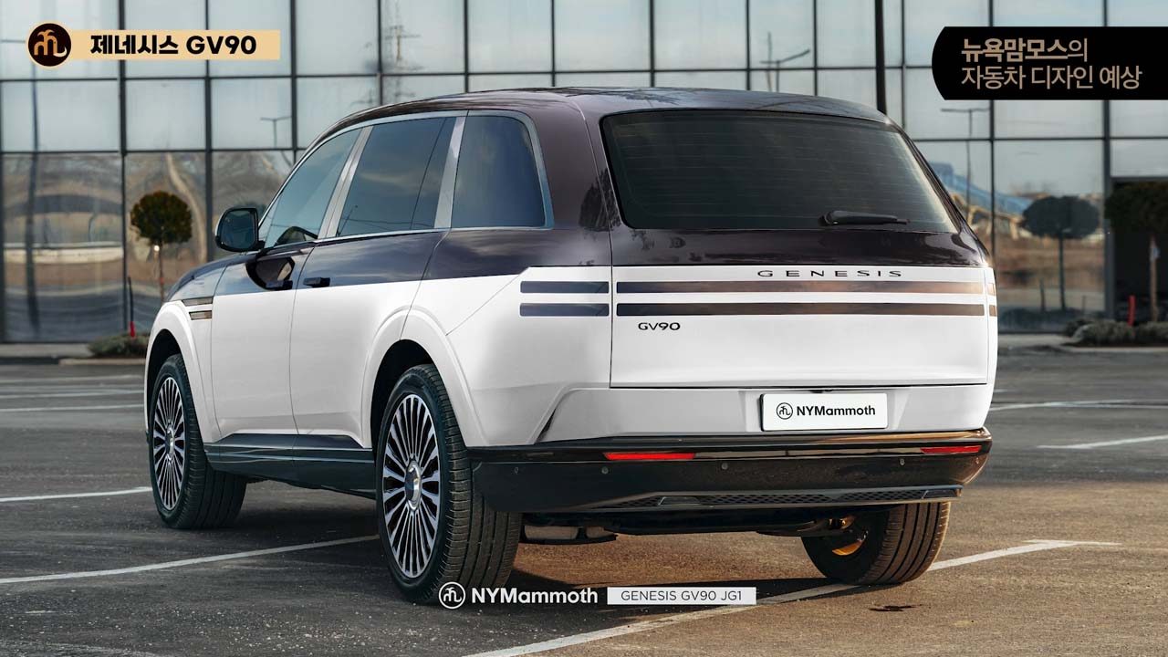 신차 예상도 유튜브 채널 ‘뉴욕맘모스’가 제작한 GV90 예상도는 테스트카 스파이샷에서 확인된 도어 핸들과 후면부 디자인이 반영됐다. 코치 도어 적용 모델은 2열 도어 앞쪽에 오토 플러시 타입 도어 핸들이 적용되어 기본 모델과 차별화된 모습을 완성했다.