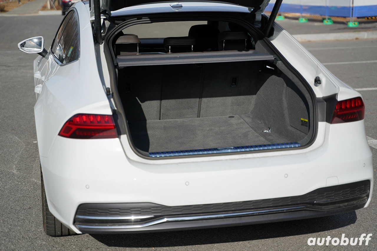 패스트백 스타일의 A7은 일반 세단 대비 여유로운 적재공간을 제공한다. 특히 시트를 폴딩 했을 시에는 SUV 부럽지 않은 적재공간을 제공한다. 다만 바닥면이 완전히 평탄화되지 않기 때문에 차박을 고려한다면 적합하지 않다.