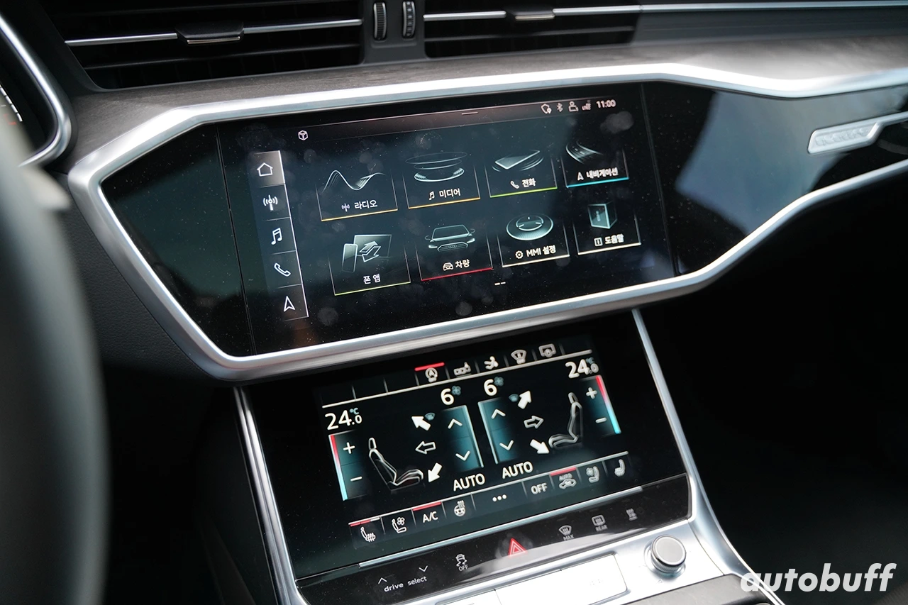 실내는 최신 아우디 레이아웃을 적용해 세련된 모습이다. 계기판부터 인포테인먼트 디스플레이, 공조기 패널까지 모두 다 디스플레이를 적용해 하이테크한 느낌을 준다. 특히 중앙의 MMI 디스플레이는 운전자 쪽으로 기울어진 레이아웃을 적용해 안정적인 느낌을 준다.