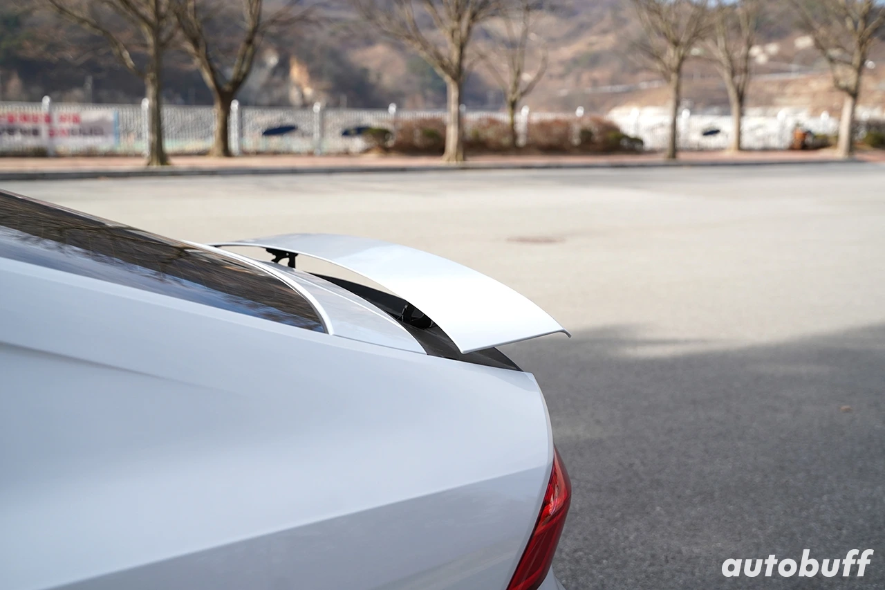 후면은 길게 이어진 테일램프가 눈에 띈다. 테일램프 그래픽 역시 전면 주간주행등 그래픽과 동일한 패턴을 적용해 통일감을 부여했고, 범퍼 하단에 머플러는 히든타입을 적용해 비교적 단정한 모습이다. 또한 테일게이트 끝단에 전동 스포일러를 적용해 멋스러움을 더했다. 전동 스포일러는 고속 주행 시 자동으로 작동하기도 하지만, 인포테인먼트 시스템을 통해 수동 조작도 가능하다.