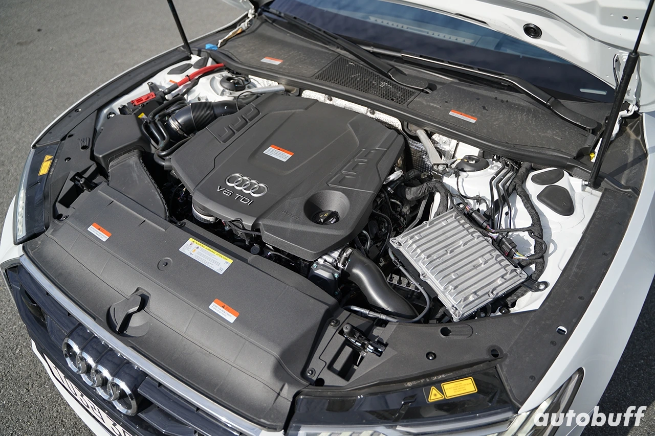 아우디 A7 50 TDI에 탑재된 3리터 디젤엔진은 최고출력 286마력, 최대토크 63.2kg.m를 발휘한다. 시트에 앉아 시동을 걸면 실내에서는 디젤 엔진이라는 것을 쉽게 알아차리기 어려울 만큼 정숙성이 우수하다. 과장해서 계기판에 5천 RPM부터 레드존이 시작하는 것을 보고 디젤 모델임을 알아차릴 수 있을 정도다.