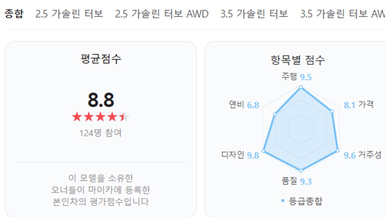 실제 오너들의 평가를 기반으로 차량 만족도 점수를 공개하는 ‘네이버 마이카 오너평가’에 따르면 제네시스 G80의 평균 점수는 8.8점이다.