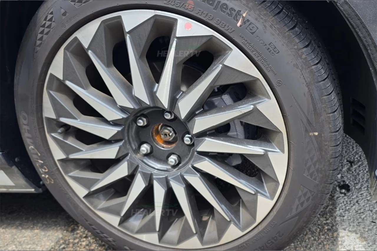 전반적으로 현행 모델 대비 유선형 디자인이 강조될 것으로 기대되는 부분이다. 또한 새로운 19인치 휠 디자인도 포착됐다. 투톤 다중 스포크 휠 디자인을 채택해 고급감을 더했으며, 프리뷰 전자제어 서스펜션 사양이 빠진 모델에 해당 휠 디자인이 적용될 것으로 예상된다.