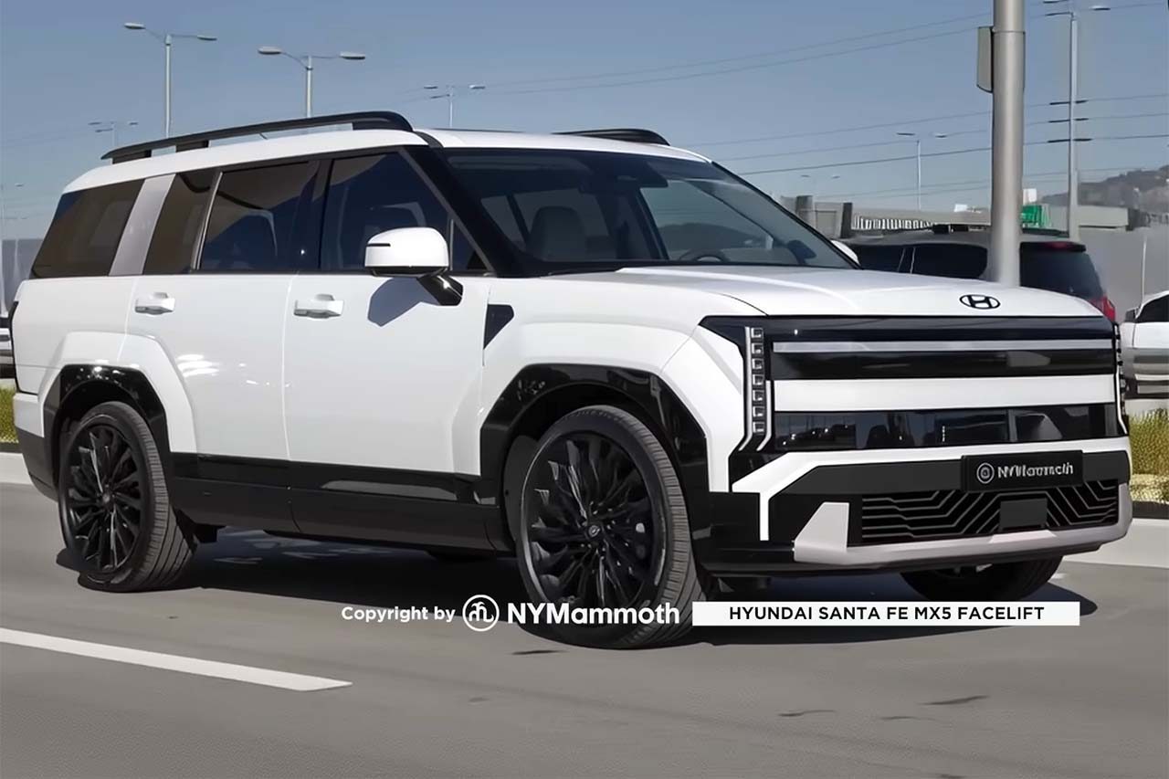 신차 예상도 유튜브 채널 ‘뉴욕맘모스’가 제작한 싼타페 페이스리프트 예상도는 완전히 새롭게 변경되는 전면부 디자인을 미리 확인해 볼 수 있다. 앞서 테스트카 위장막 안쪽으로 일부 확인된 세로형 헤드램프를 기반으로 풀체인지에 가까운 변화가 이뤄졌다.