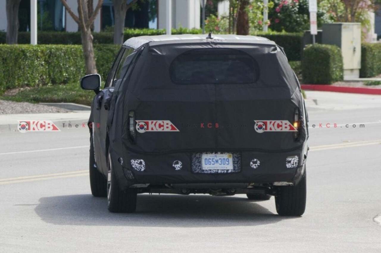 후면 역시 전면부와 동일한 기조를 이어간다. 차체 양 끝단에 세로형 램프와 수평형 램프가 적용되며, 싼타페 레터링은 램프 하단에 길게 배치됐다. 테일램프 디자인은 5세대 싼타페 디자인 중 불호가 가장 많은 포인트였는데, 페이스리프트를 거치며 크게 개선될 것으로 기대된다.