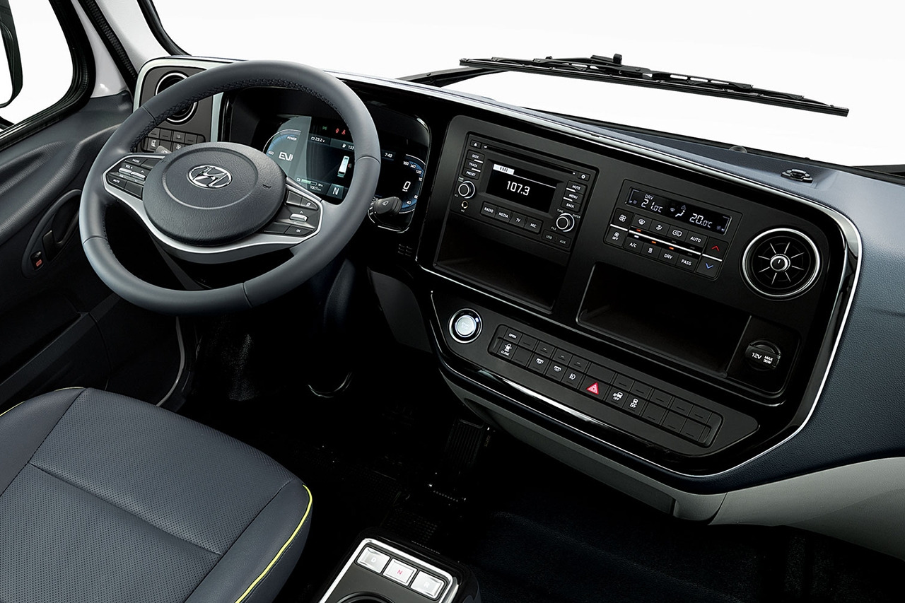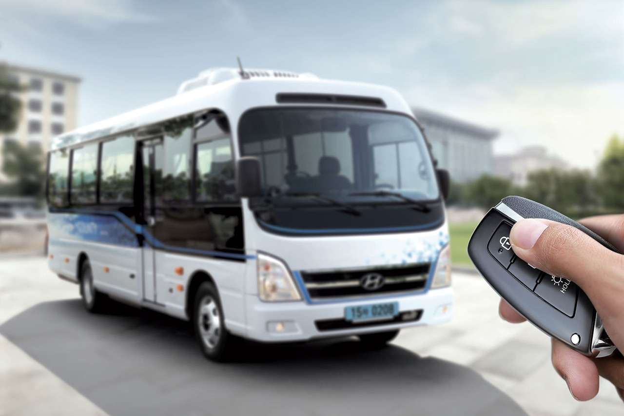 또한 스티어링휠 내에 각종 기능 버튼이 배치된 일렉트릭 전용 스티어링 휠, 키를 꽂지 않아도 문의 잠금과 잠금해제가 가능하고 시동을 걸 수 있는 버튼 시동 스마트키를 적용하고, 카운티 차량 최초로 블루링크 서비스를 도입해 블루링크 앱을 활용할 경우 스마트키 없이도 원격으로 시동을 켜거나 공조장치를 작동할 수 있도록 하는 등 승용차 수준의 편의성을 구현했다.