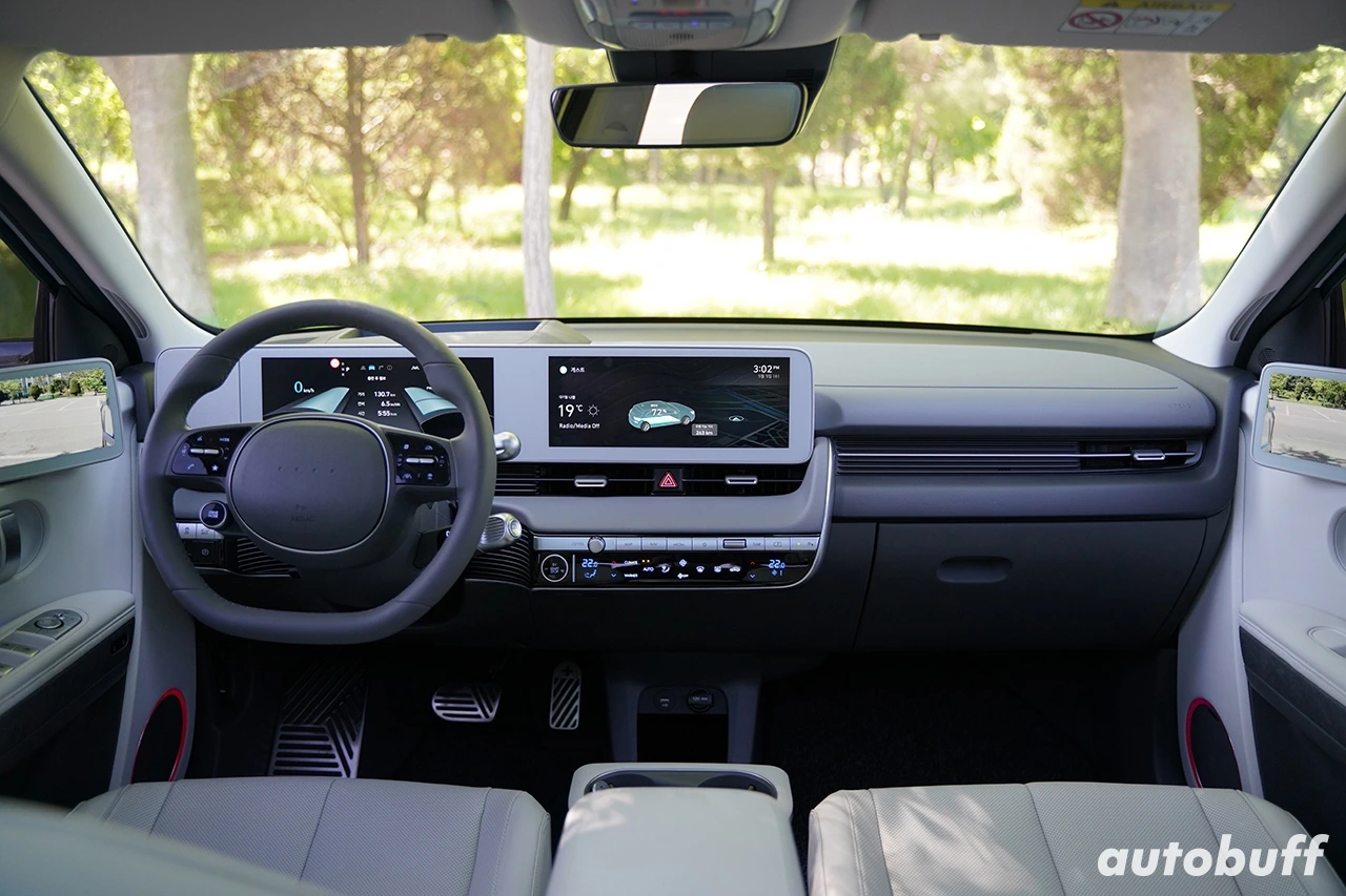 시승차에 올라타니 다크 페블 그레이 컬러의 화사한 실내가 반겨준다. 12.3인치 디지털 계기판과 인포테인먼트 디스플레이가 하이테크한 느낌과 더불어 실내 분위기를 한층 더 밝게 만들어준다. 화이트 테마가 전반적인 인테리어와 베젤과의 일체감은 우수하지만, 밝은 색상이 싫은 운전자들을 위해 블랙 테마도 준비되어 있다. 스마트폰의 다크 모드와 동일하게 야간에 눈에 피로도를 낮추는데 도움을 줬다.